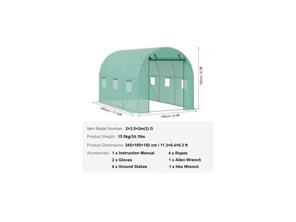 Číslo modelu položky: 2×3,5×2m(3)G,Hmotnost výrobku: 15,5 kg/34,1 liber,Rozměry výrobku: 345x195x192 cm/11,32x6,40x6,30 stop