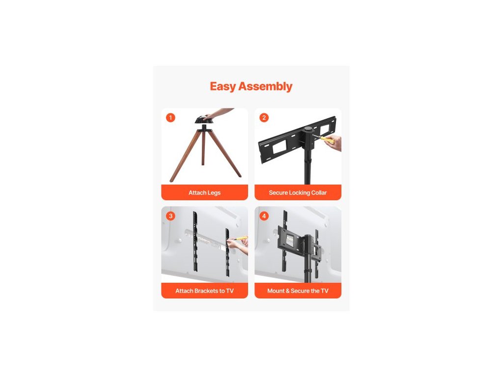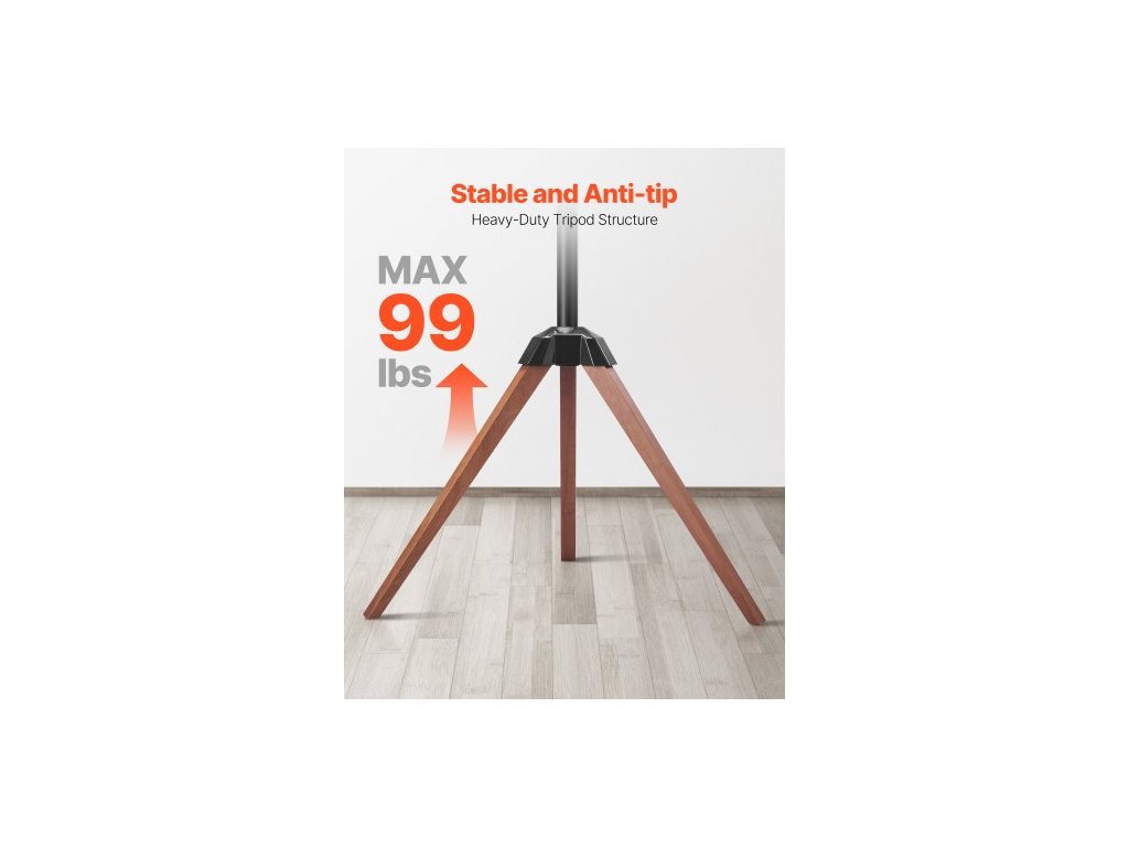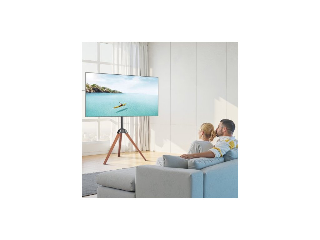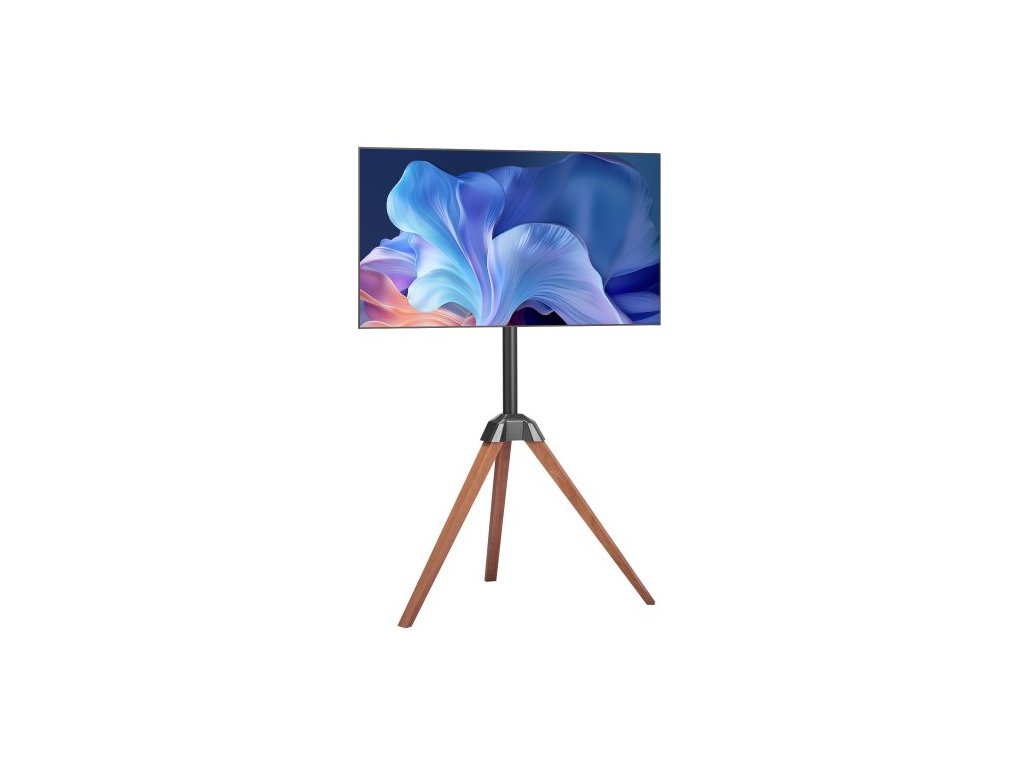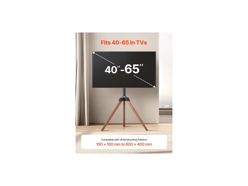 TV stojan s trojnožkou, pro ploché/zakřivené televizory s úhlopříčkou 40-65 palců, až 40 kg, otáčení doleva-doprava 18°, přenosný TV stojan s nohami z dubového dřeva, do ložnice, obývacího pokoje, studia, MAX VESA 600 x 400 mmUniverzální kompatibilita