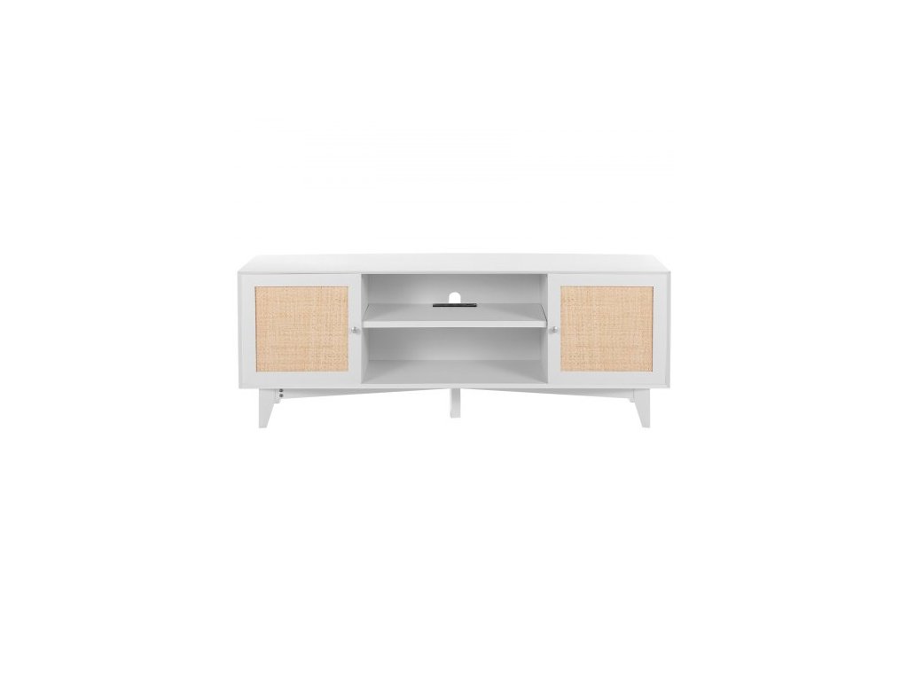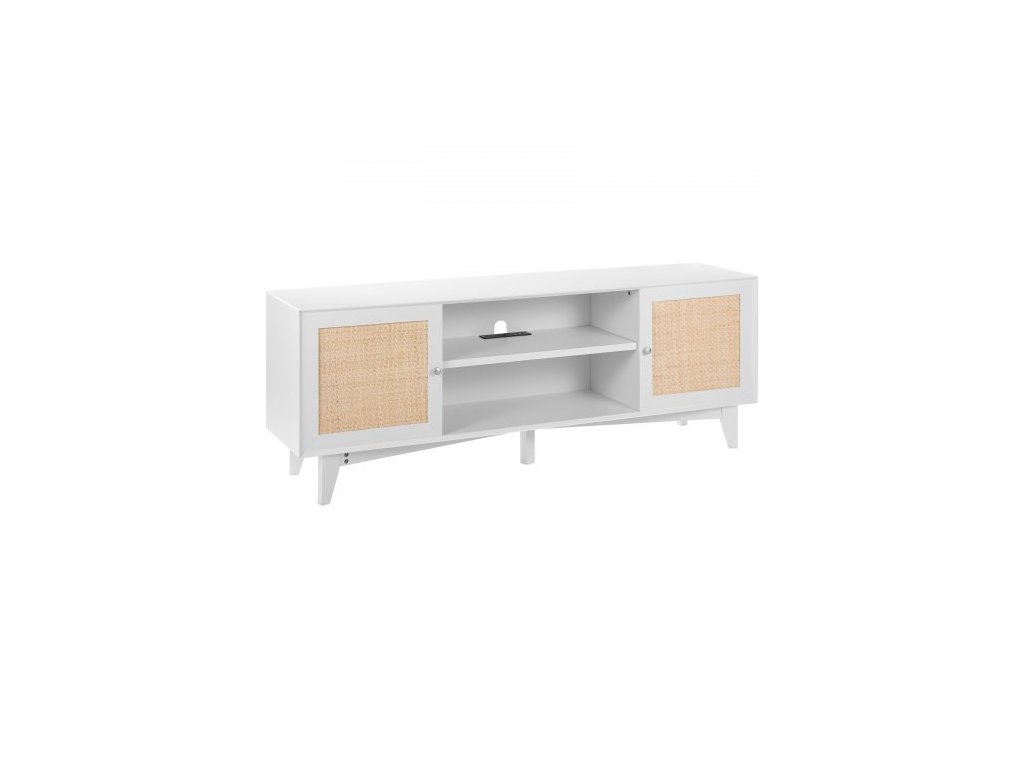 TV stolek z ratanu 191 cm, TV boho, bílý