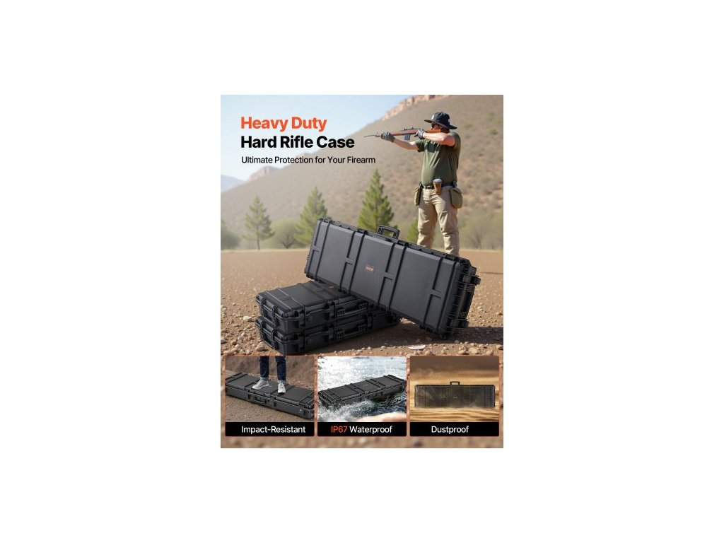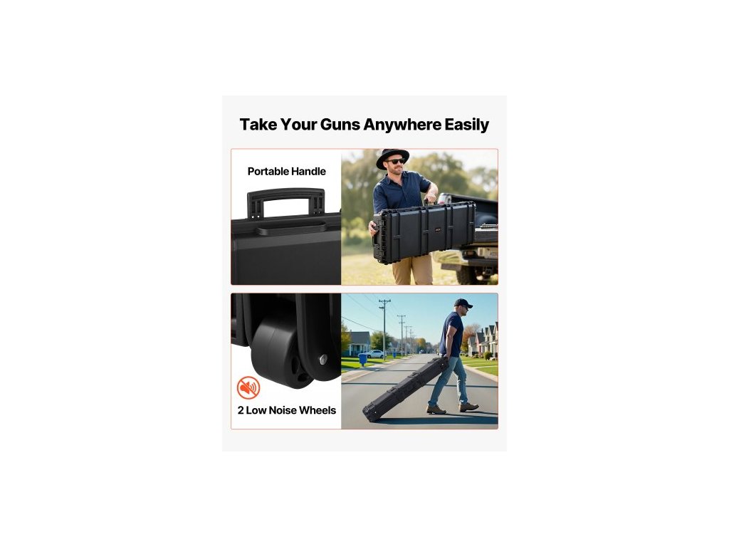 Tvrdé pouzdro na pušku , uzamykatelné pouzdro na pušku s předřezanými pěnami, úložný prostor pro zbraň 1320 mm s kolečky, odolné, vodotěsné a prachotěsné pouzdro na pistole s krytím IP67 pro pušky, brokovnice a airsoftové zbraně, černéPřenosné rukojeti