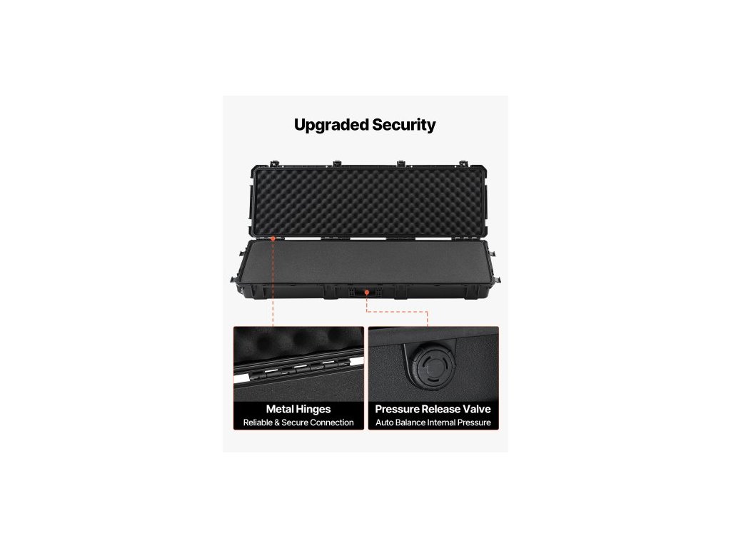 Tvrdé pouzdro na pušku , uzamykatelné pouzdro na pušku s předřezanými pěnami, úložný prostor pro zbraň 1320 mm s kolečky, odolné, vodotěsné a prachotěsné pouzdro na pistole s krytím IP67 pro pušky, brokovnice, airsoftové zbraně, černé
