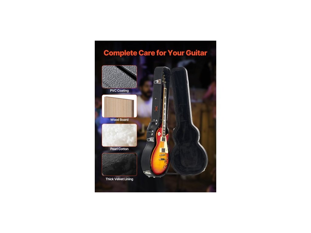 Tvrdý kufr na elektrickou kytaru 41,34 palce/105 cm se zámkem a klíčem pro kytary LES Paul