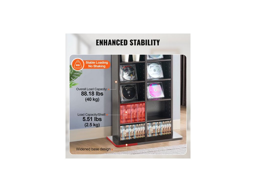 Skříň na ukládání médií , 8vrstvá DVD police pojme až 464 CD, nastavitelné police na CD s 16 přihrádkami, chrání a organizuje hudební, filmové, videohry nebo sbírky memorabilií, EspressoPřizpůsobitelný úložný prostor