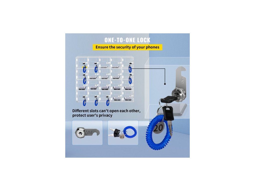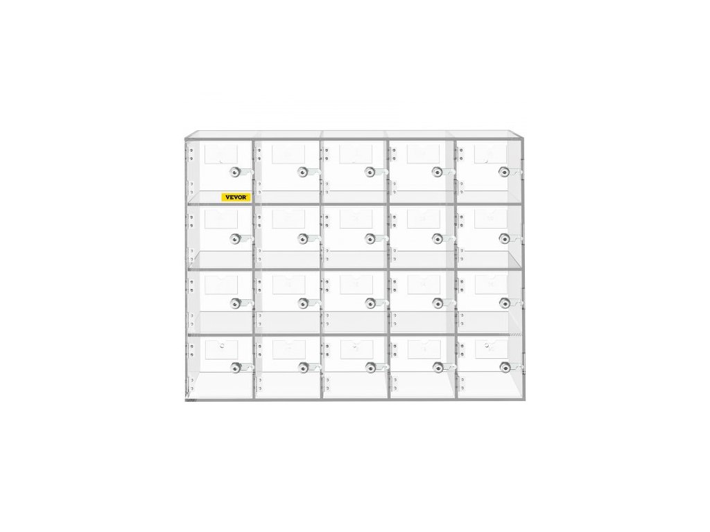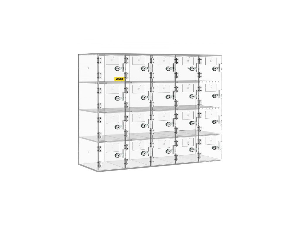 úložná skříňka na mobilní telefon, 20 slotů, akrylový materiál se zámky na dveře a klíči, nástěnná skříňka, kapsa, kancelářská/učebna/tělocvična, průhlednáÚložná skříňka na mobilní telefony