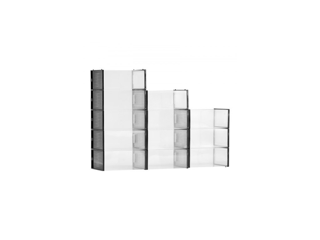 úložné boxy na boty, 12 kusů stohovatelných úložných boxů na boty, vhodné až do velikosti US 11, plastové modulární úložné boxy na tenisky, které šetří místo, pro uložení vysokých podpatků, bot a klobouků, černý rámModulární a všestranné