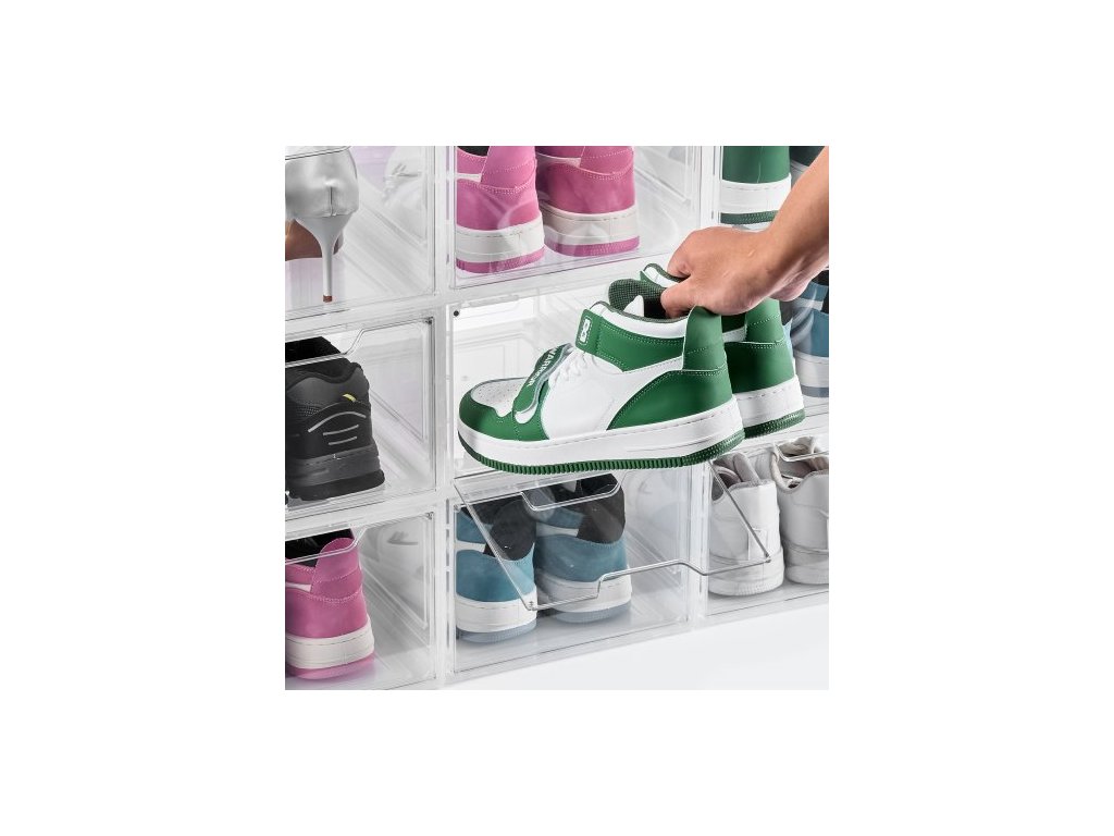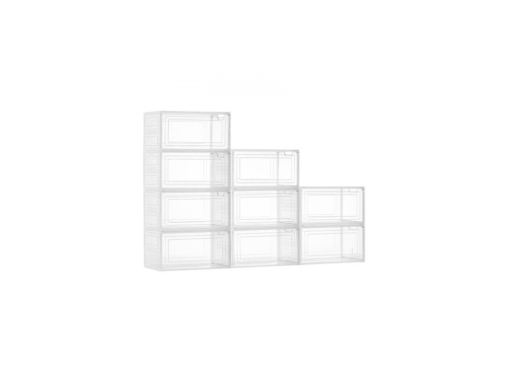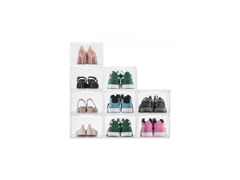 úložné boxy na boty, 9 kusů průhledných stohovatelných úložných boxů s magnetickými dvířky, vhodné až do velikosti US 13, plastové boxy na tenisky, boty a klobouky, průhledně bíléModulární a všestranné