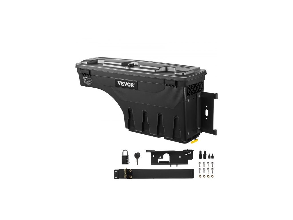 Úložný box na korbu nákladního vozu, uzamykatelné víko, vodotěsný box na nářadí z ABS plastu, objem 20 l, s visacím zámkem na heslo, kompatibilní s vozy Dodge Ram 1500 2019-2021, strana spolujezdce, černá