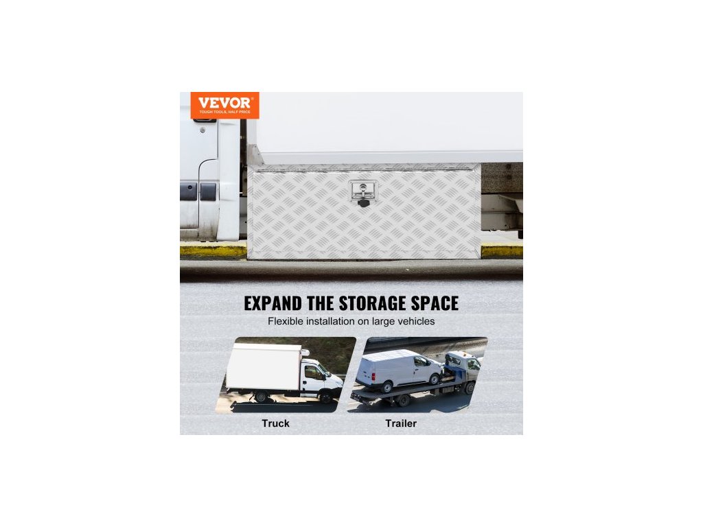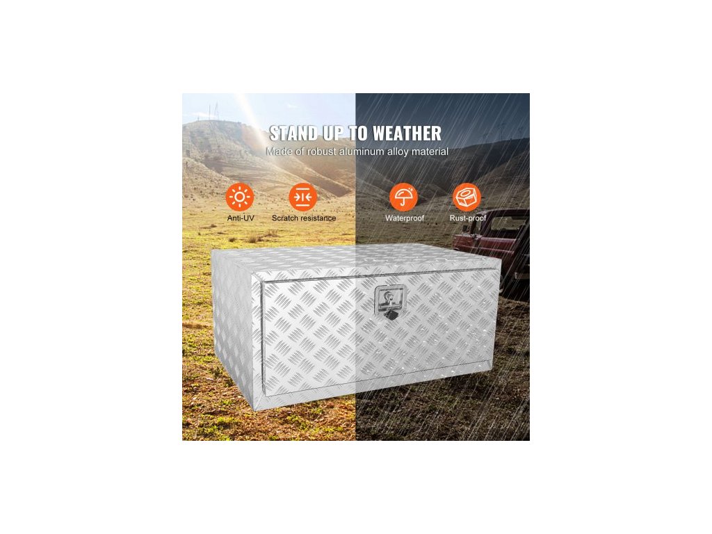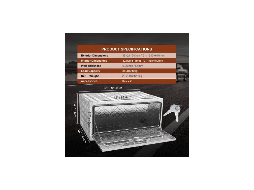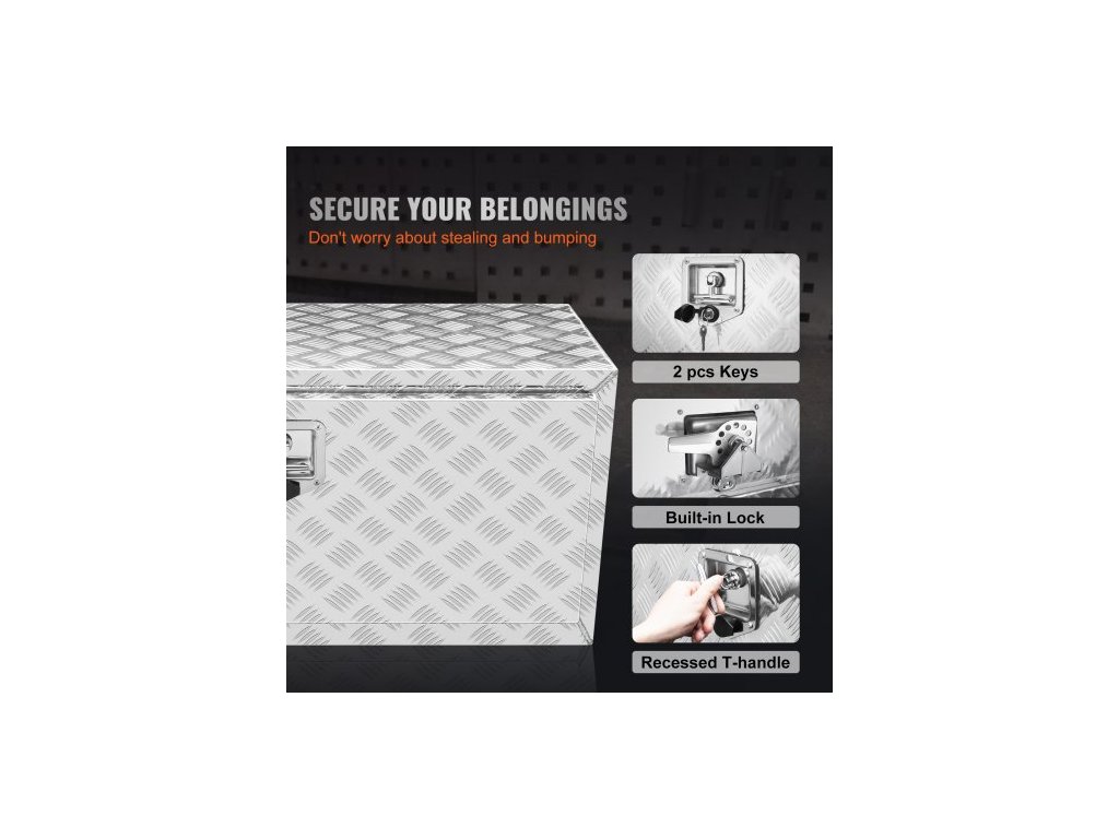 Podvozkový box na nákladní automobil, úložný box na pickup 36"×24"×24", odolný hliníkový box na nářadí s diamantovým plechem, zámkem a klíči, vodotěsný úložný box na přívěs s T-rukojetí pro nákladní automobily, dodávky a přívěsyIdeální pro všechny nákladní automobily