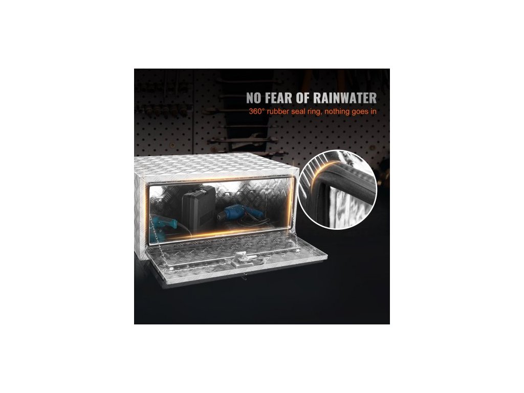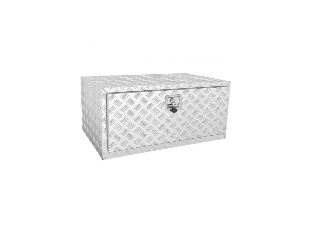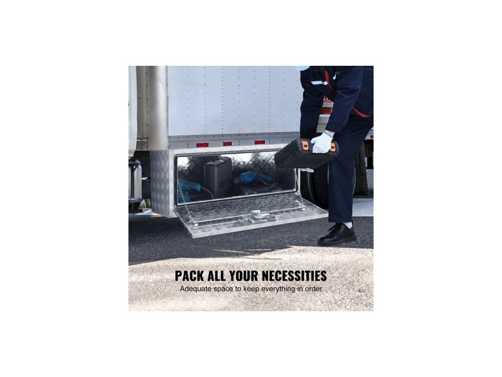 úložný box na podvozek nákladního vozu, úložný box na pickup 91 × 61 × 61 cm, odolný hliníkový box na nářadí s diamantovým plechem se zámkem a klíči, vodotěsný úložný box na přívěs s T-rukojetí pro nákladní automobily, dodávky a přívěsy