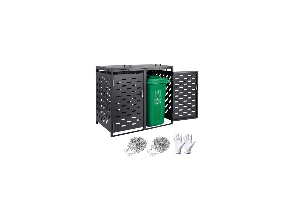 úložný prostor na odpadkové koše, venkovní úložný domek na odpadkové koše o objemu 2 x 52,79 galonů, horizontální vodotěsný úložný prostor s řetězovým víkem, uzamykatelný úložný domek na odpadkové koše, na zahradu, dvůr a terasu