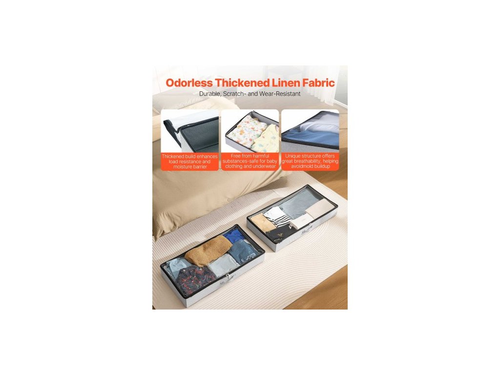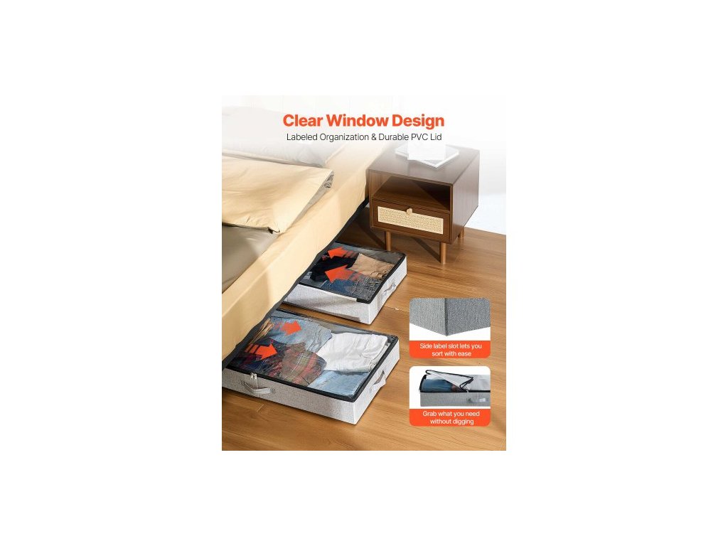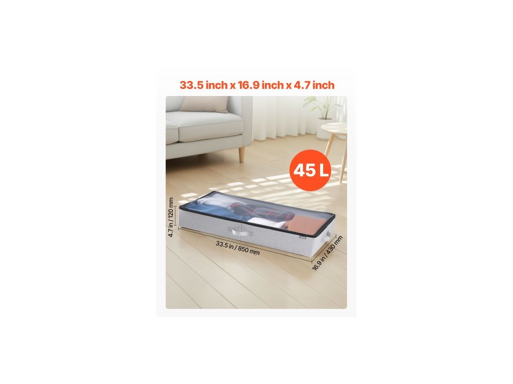 Úložný prostor pod postel s průhledným víkem, 850 x 430 x 120 mm, 45l velké úložné kontejnery na oblečení pod postel, nízkoprofilový organizér na boty, zásuvka pod postel, box na přikrývky a boty do ložnice, 2 ks