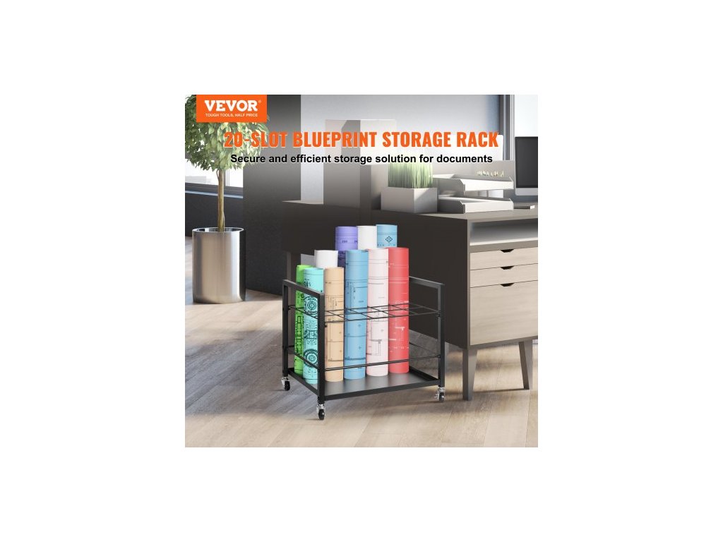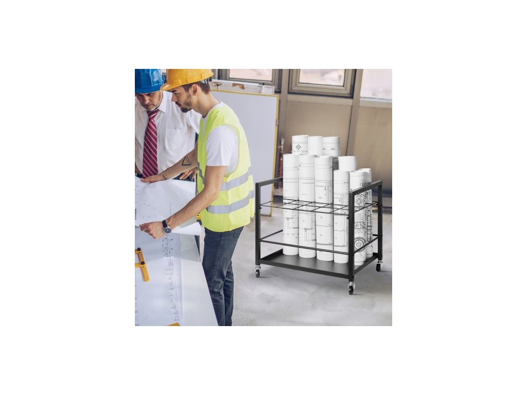úložný stojan na plány, držák na plány s 20 sloty a kolečky, mobilní kovový úložný vozík na plány pro plakáty s mapou, architektonické stavební plány, organizér na role do domácnosti, kanceláře, školyÚložný stojan na plány