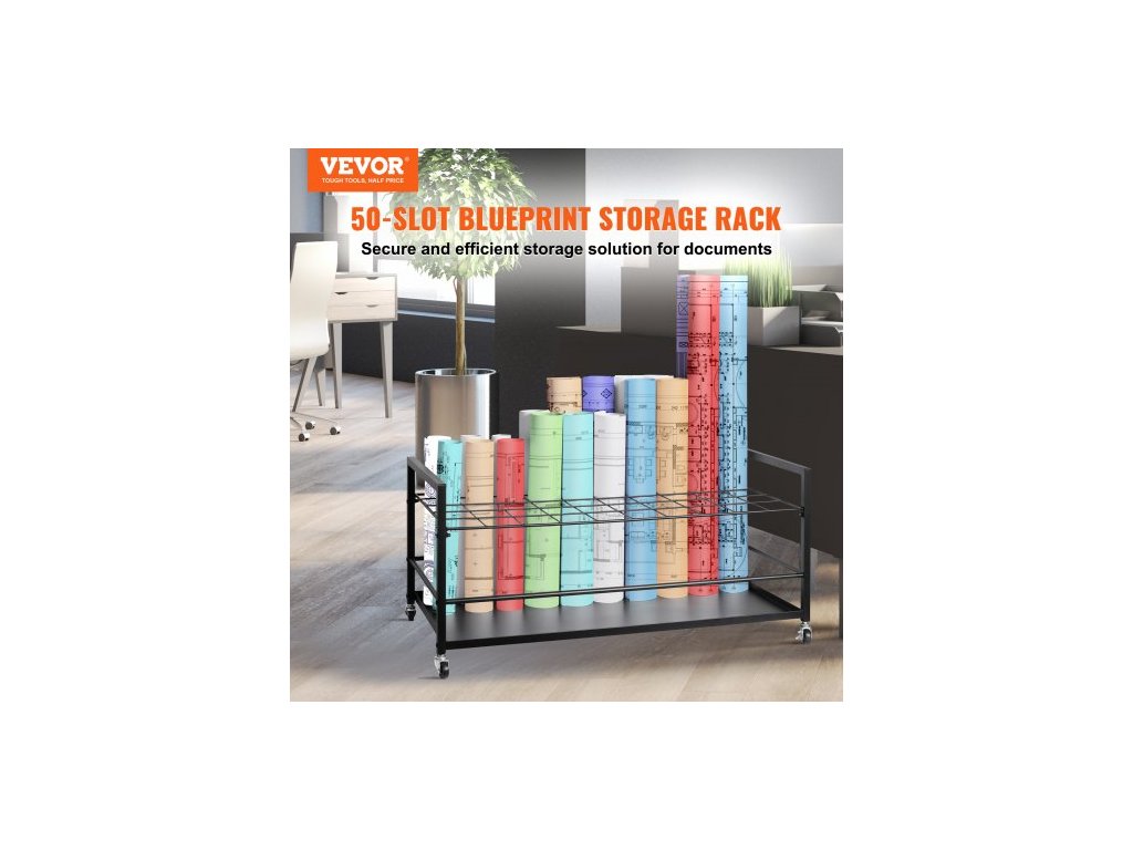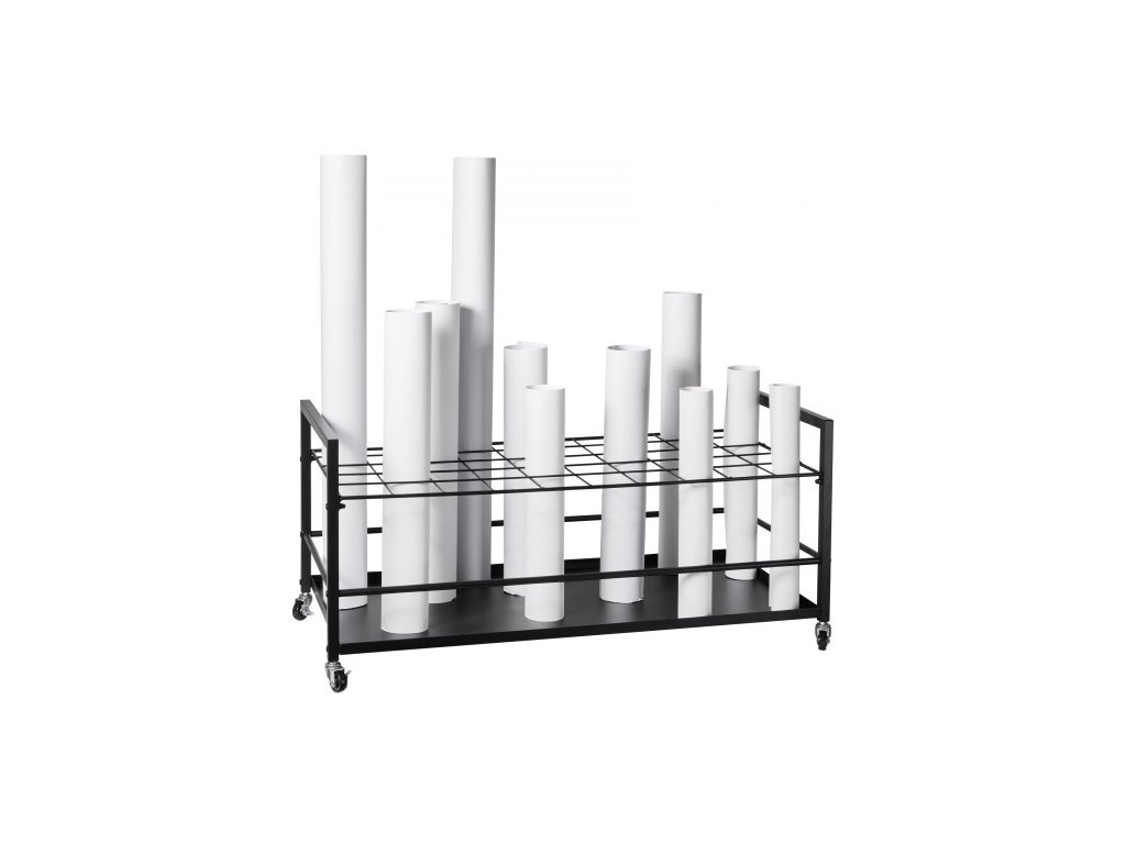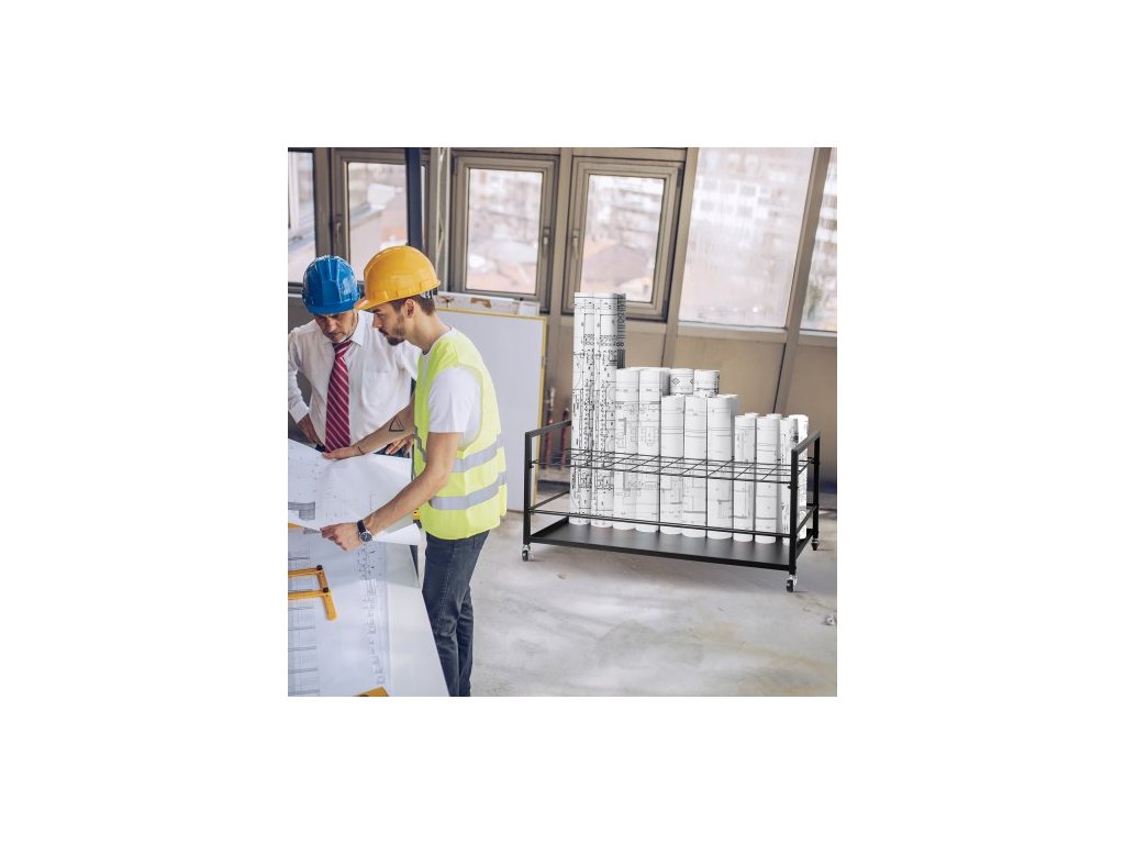 úložný stojan na plány, držák na plány s 50 místy s kolečky, mobilní kovový úložný vozík na plány pro stavební plány, mapy, architektonické plakáty, držák na role pro domácnost, kancelář, školuÚložný stojan na plány