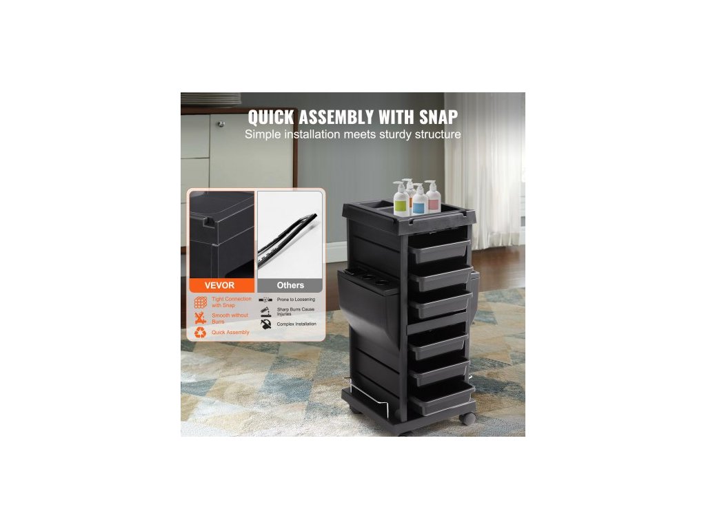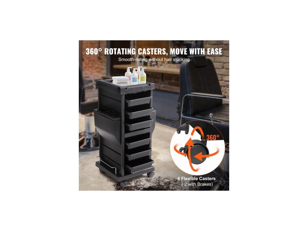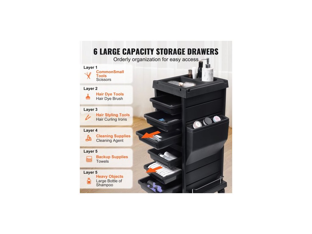 Ultimate kadeřnický vozík, uzamykatelný kosmetický vozík pro kadeřníky se 6 vyjímatelnými zásuvkami a držákem na nářadí, plastový kadeřnický vozík s uzamykatelnými kolečky pro Beauty SPA holičstvíMaximalizace úložného prostoru