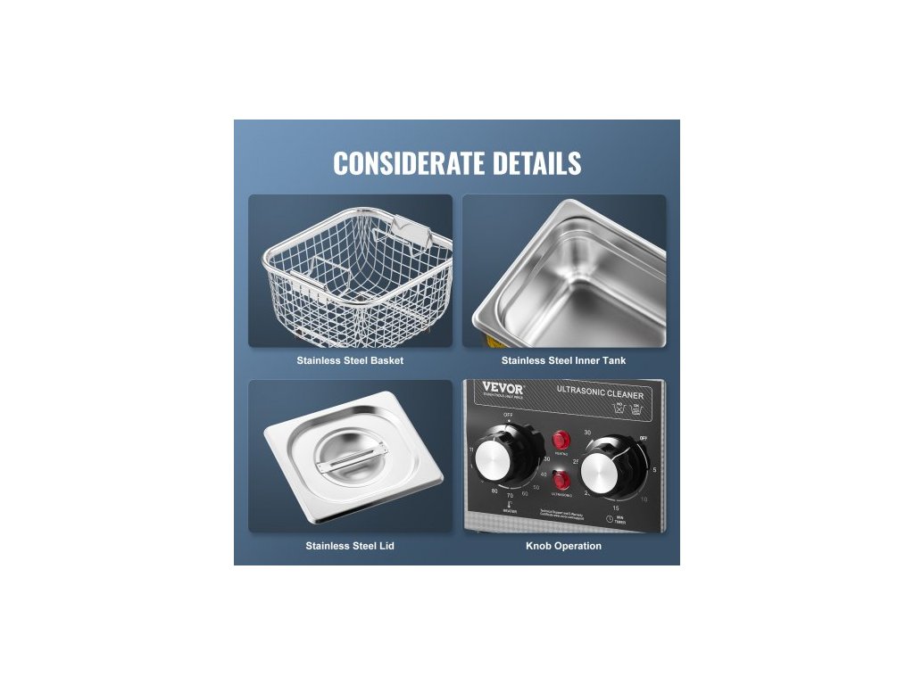 Ultrazvukový převodník: 1 ks,Rozměry výrobku: 175 x 165 x 190 mm,Hladina hluku: ≤75dB,Délka napájecího kabelu: 1,5 m,Objem: 2L,Model: KZ-S2,Doba regulace: 0-30 minut,Hmotnost výrobku: 1,95 kg,Frekvence: 40kHz,Teplotní rozsah: 0-80°C,Výkon ultrazvuku: 60W,Topný výkon: 150W,Rozměry vnitřní nádrže z nerezové oceli: 150 x 135 x 100 mm (tloušťka stěny: 1,0 mm)