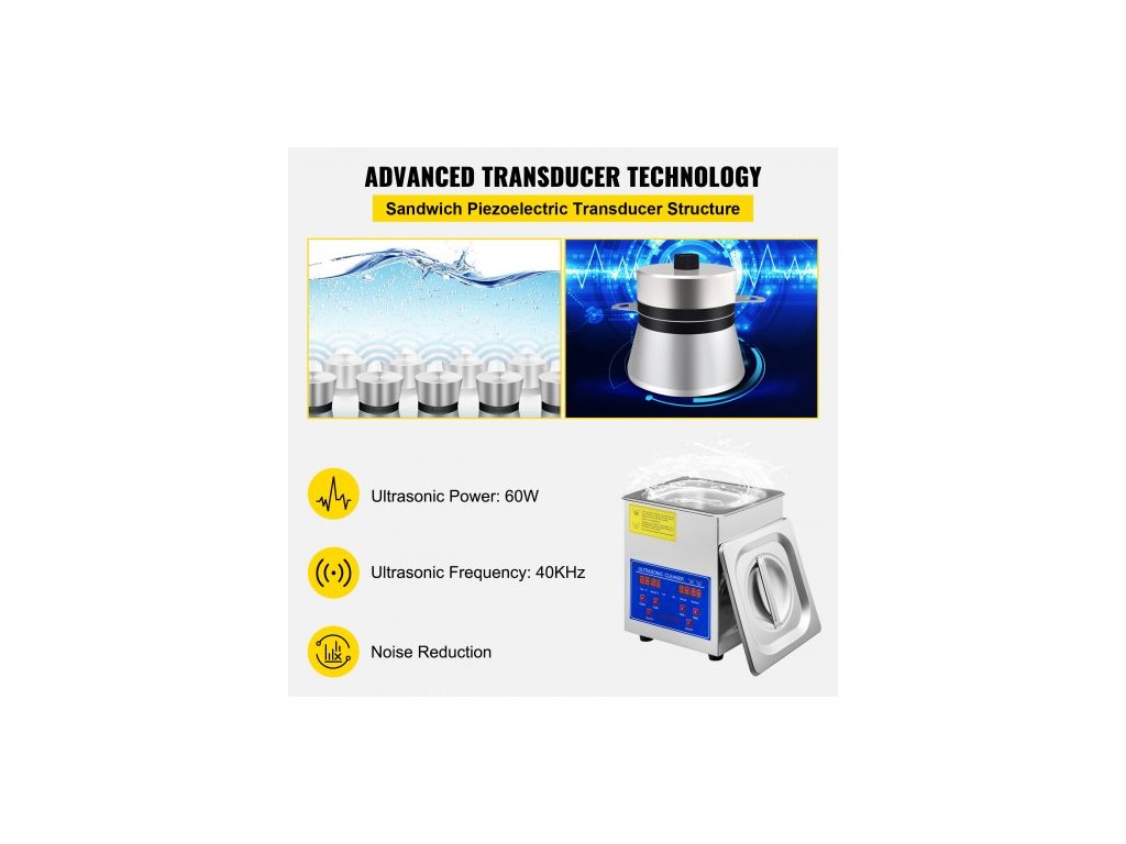 Ultrazvukový čistič , ultrazvukové čisticí zařízení, topné těleso, časovač 60 W