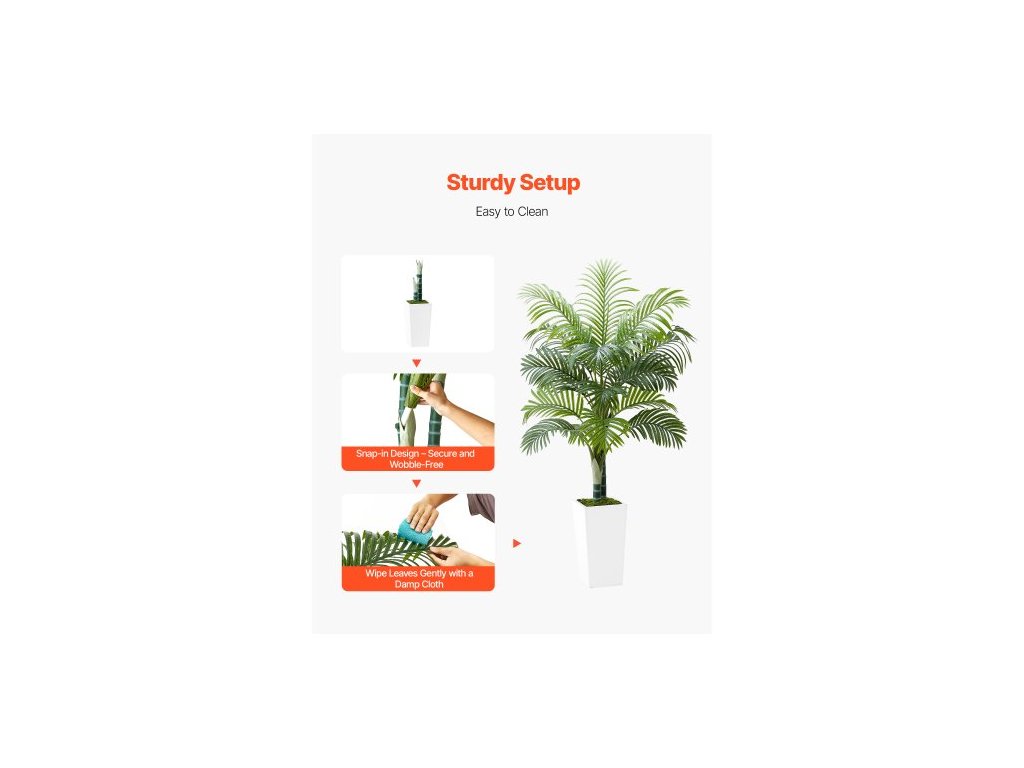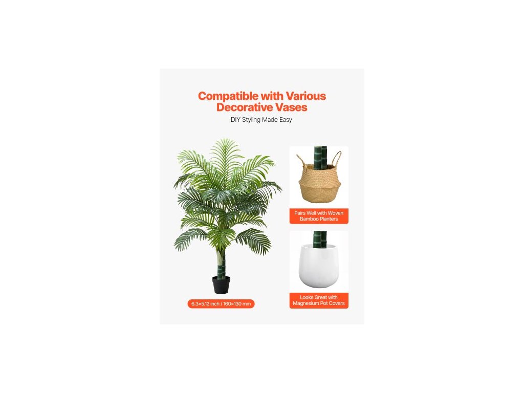 Typ: Areková palma se silným kmenem,Výška stromu: 5 stop / 1524 mm,Vnější rozměry květináče: 15,75 x 8,66 x 8,66 palce / 400 x 220 x 220 mm,Číslo modelu položky: FH-CGSWK150,Vnitřní rozměry květináče: 6,3 x 5,12 palce / 160 x 130 mm,Množství: 1 rostlina se 2 stonky,Rozměry položky: 39,37 x 31,1 x 61,02 palce / 1000 x 790 x 1550 mm, Počet křídel: 18 ks, Čistá hmotnost: 10,52 lbs / 4,77 kg, Hlavní materiál: PE