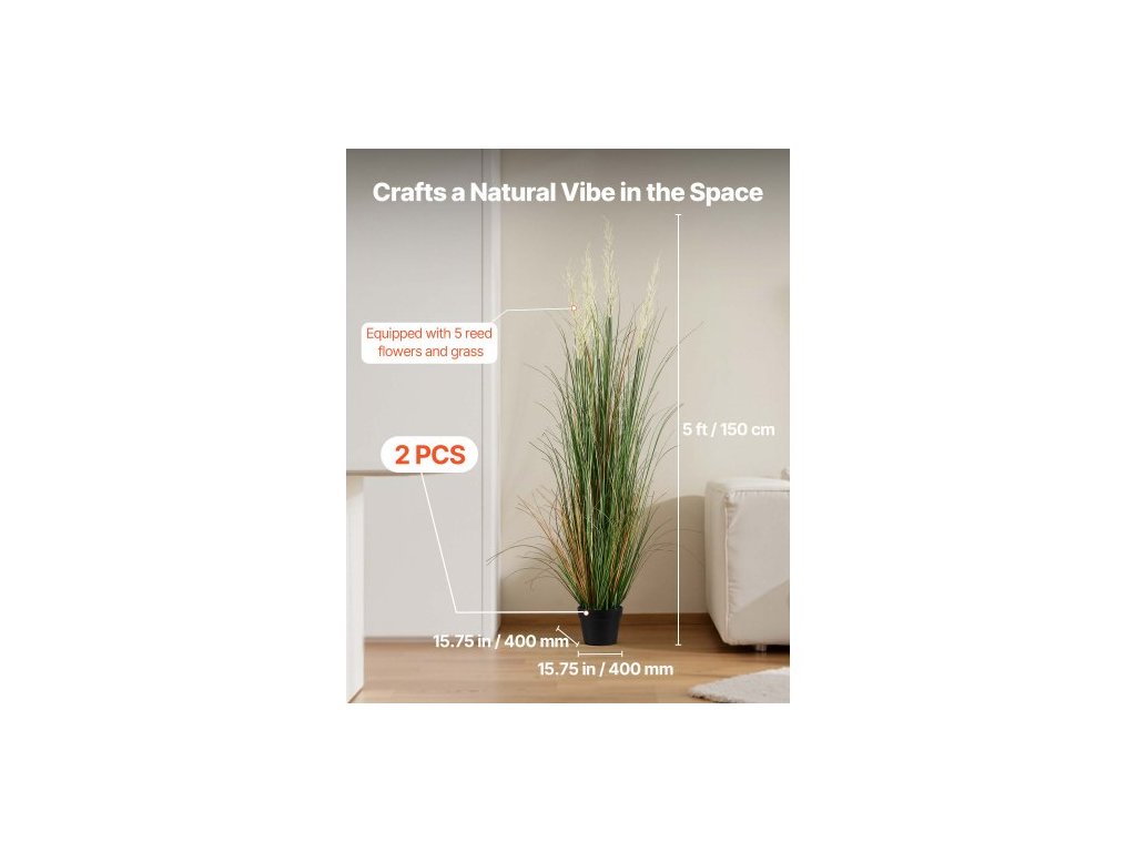 Umělá tráva, 2 kusy, 1499 mm, umělá tráva z rákosu v květináči, prémiová PVC umělá zeleň, keře, rostlina pro interiér, exteriér, dům, zahradu, kancelář, dekorace místnosti, kolaudační akce, zelená
