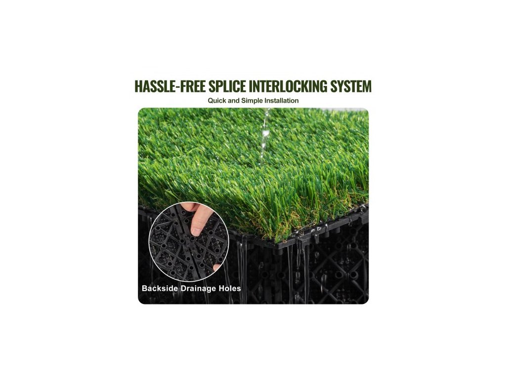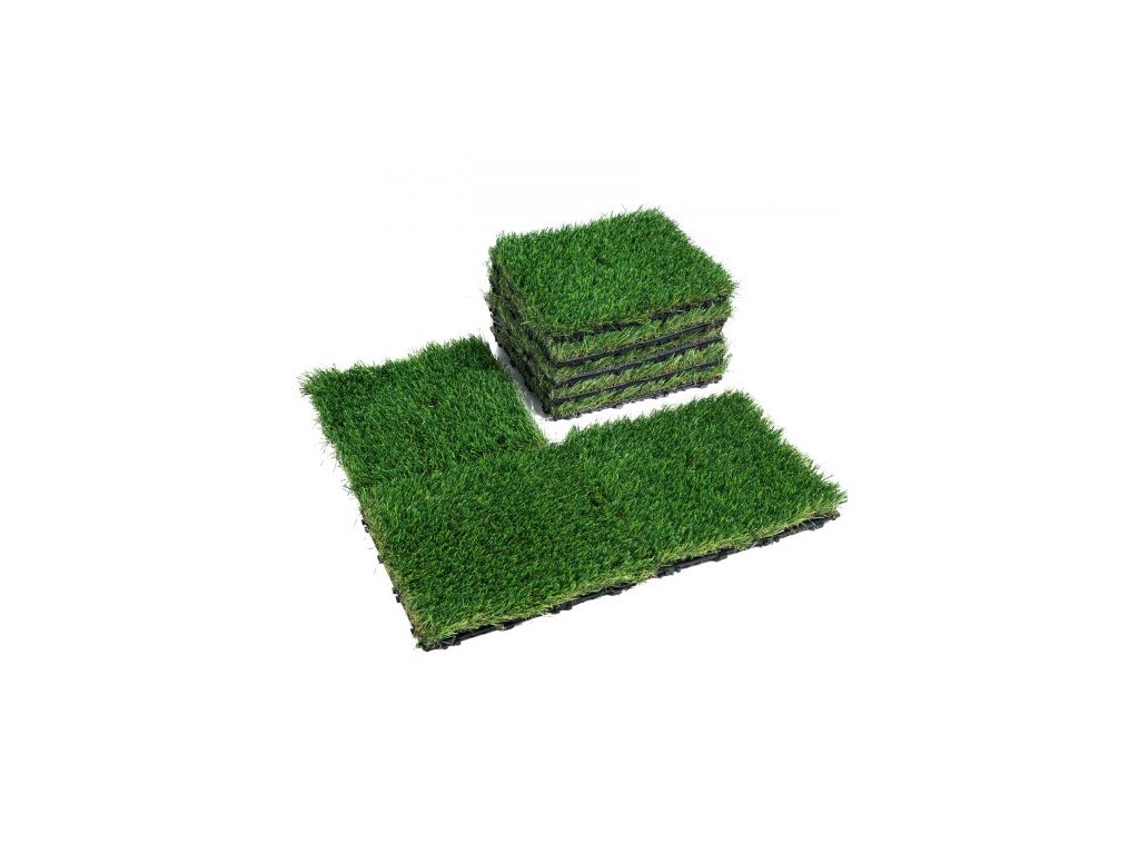 Umělé travnaté dlaždice, propletený trávník, sada terasy, balení 18 kusů 305x305 mm, syntetická umělá tráva, samoodvodňující podlahová rohož, dekorační podložka, ideální pro víceúčelové použití v interiéru, exteriéru, vstupu, škrabáku, psích rohožíOdolný materiál PP+PE