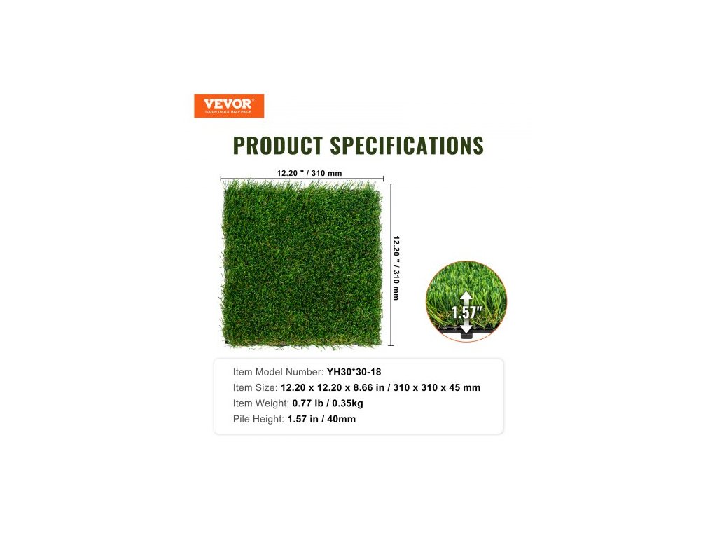 Umělá tráva, dlaždice, zámková travnatá terasa, sada 18 kusů, 305x305 mm, syntetická umělá tráva, samoodvodňovací rohož, dekorační podložka, ideální pro víceúčelové, vnitřní, venkovní, vstupní, škrabka, rohože pro psy