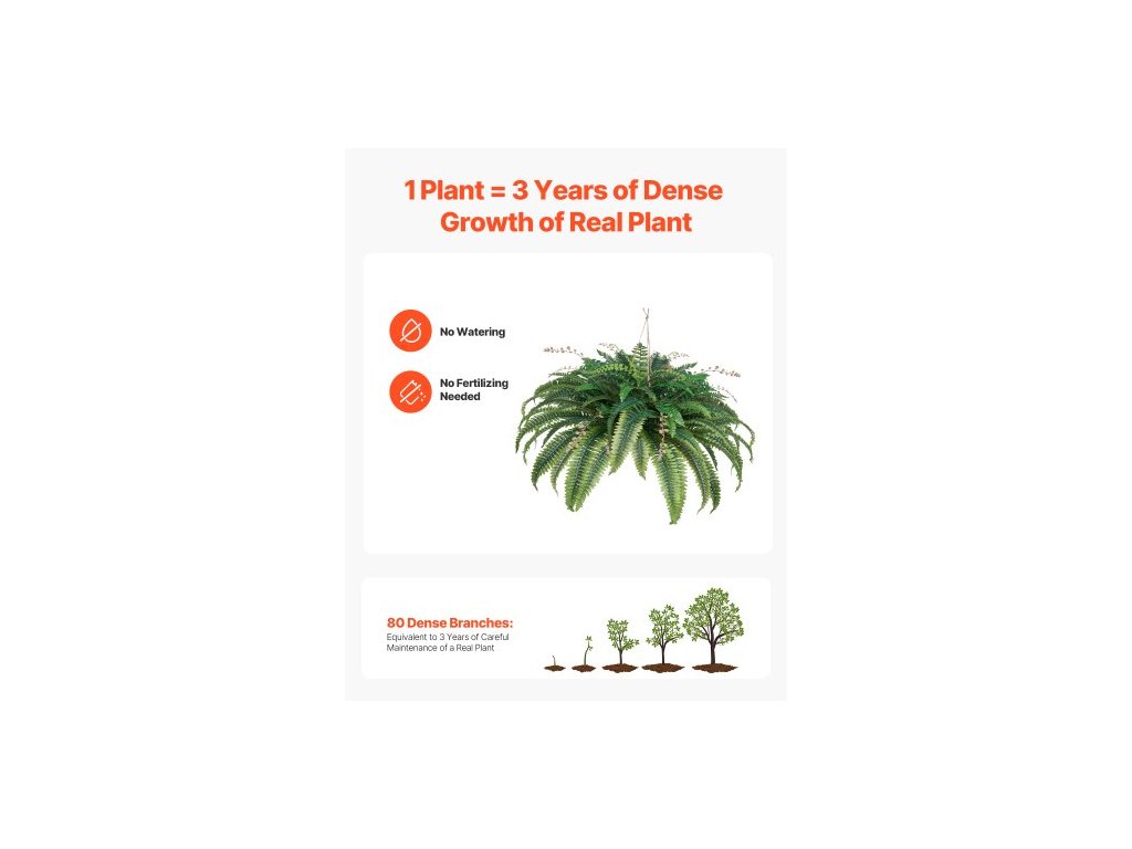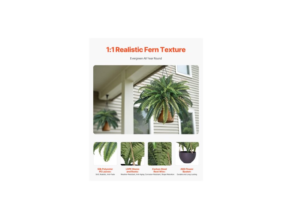 Umělé kapradiny, přírodní rozpětí, průměr 91-104 cm, velké závěsné umělé bostonské kapradiny, slunečnímu záření odolná nástěnná dekorace z umělé rostliny s 80 větvemi a květináčem, umělá kapradina pro domácí kancelář a venkovní použití