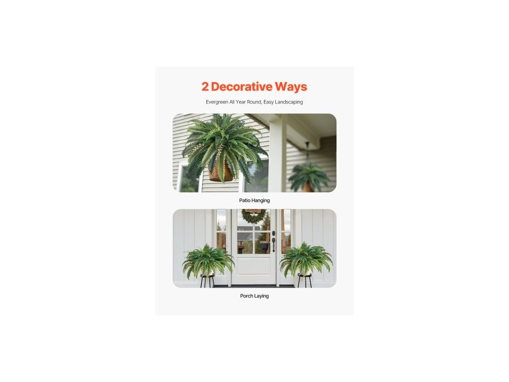 Umělé kapradiny , průměr přírodního roztažení 91-104 cm, velké závěsné umělé kapradiny bostonské, slunečnímu záření odolná nástěnná dekorace z umělé rostliny s 80 větvemi a květináčem, umělá kapradina pro domácí kancelář a venkovní použitíVelké umělé kapradiny