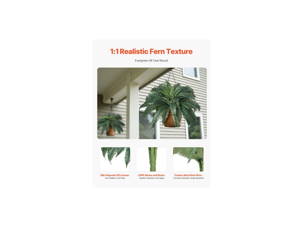 Umělé kapradiny 2 ks, přírodní rozpětí, průměr 43-47 palců, velké závěsné umělé bostonské kapradiny, nástěnná dekorace z umělých rostlin s 50 větvemi, umělá kapradina pro domácnost i kancelář (květináč není součástí balení)