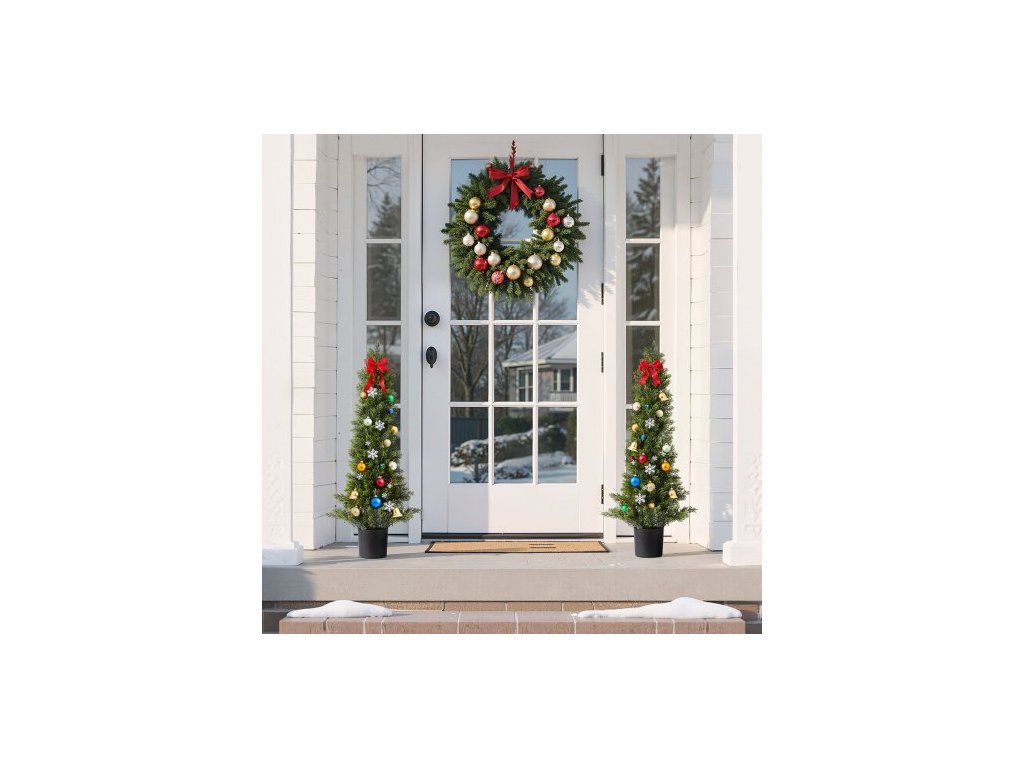 Umělé keře s topiary, 2 sady 914mm umělých borovicových keřů, rostliny, umělý hedvábný strom vypadá jako skutečný, snadná montáž pro dekoraci na verandu, venkovní terasu, zahradu, balkon, dvůr, vnitřní kancelářRealistická, odolná zeleň