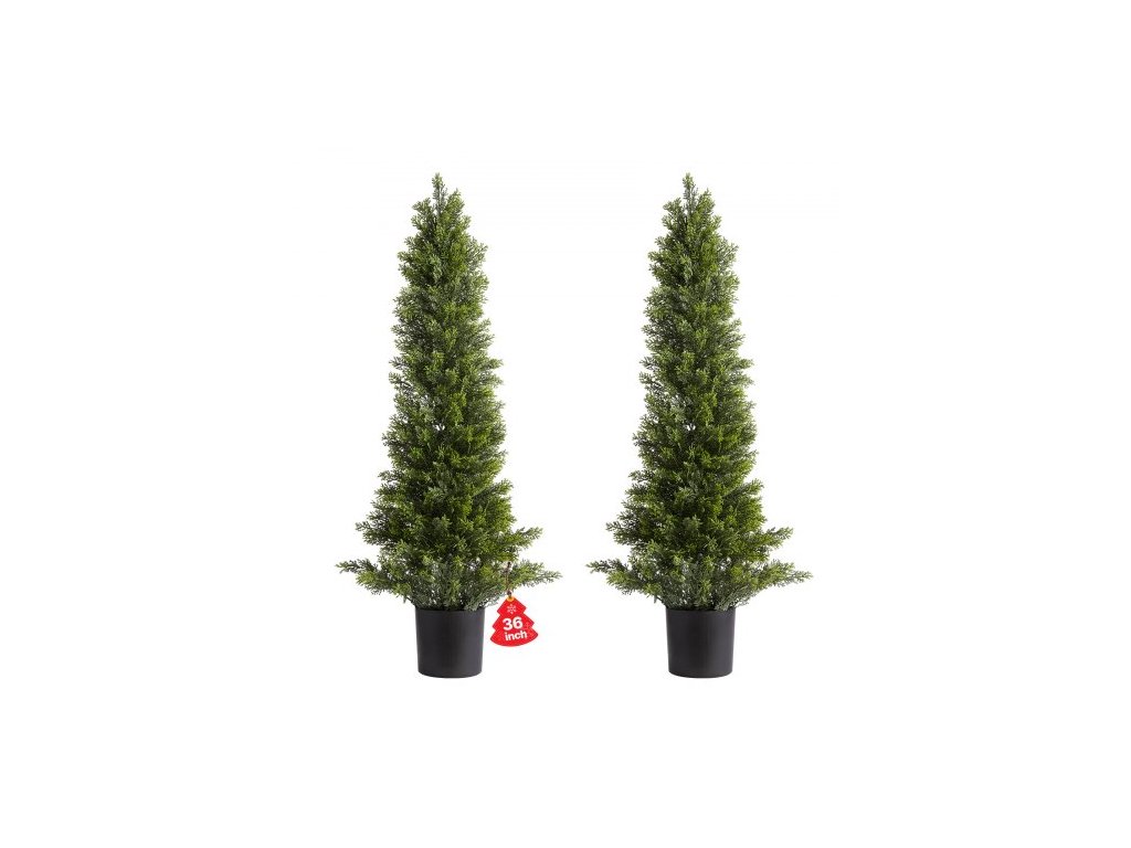 Umělé keře z cedrů, 2 sady 914 mm, umělé borovicové keře, rostliny, umělý hedvábný strom vypadá skutečně, snadná montáž pro dekoraci verandy, venkovní terasy, zahrady, balkonu, dvorku, vnitřní kanceláře