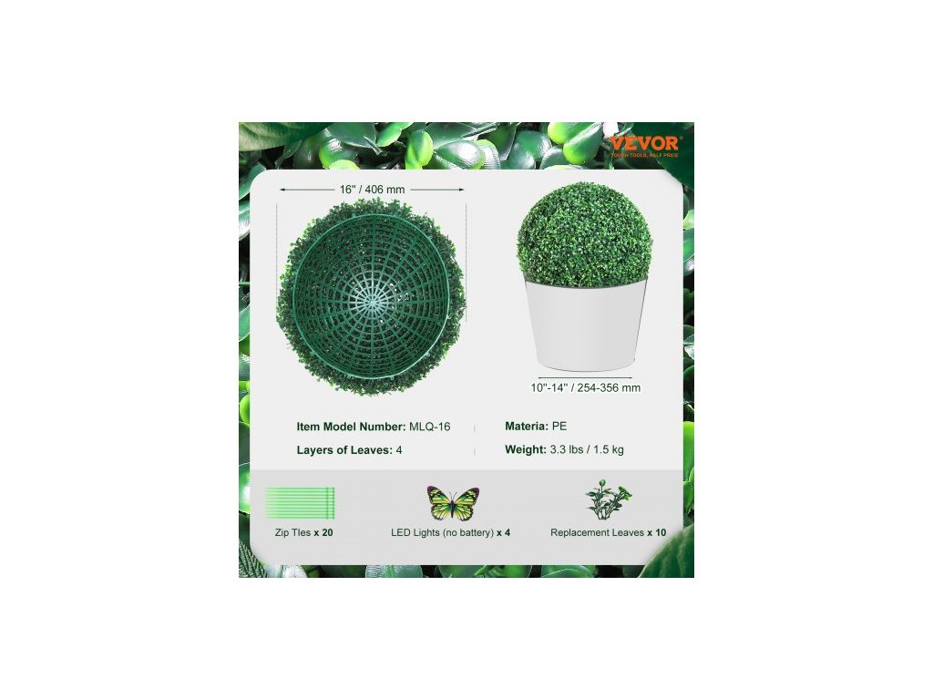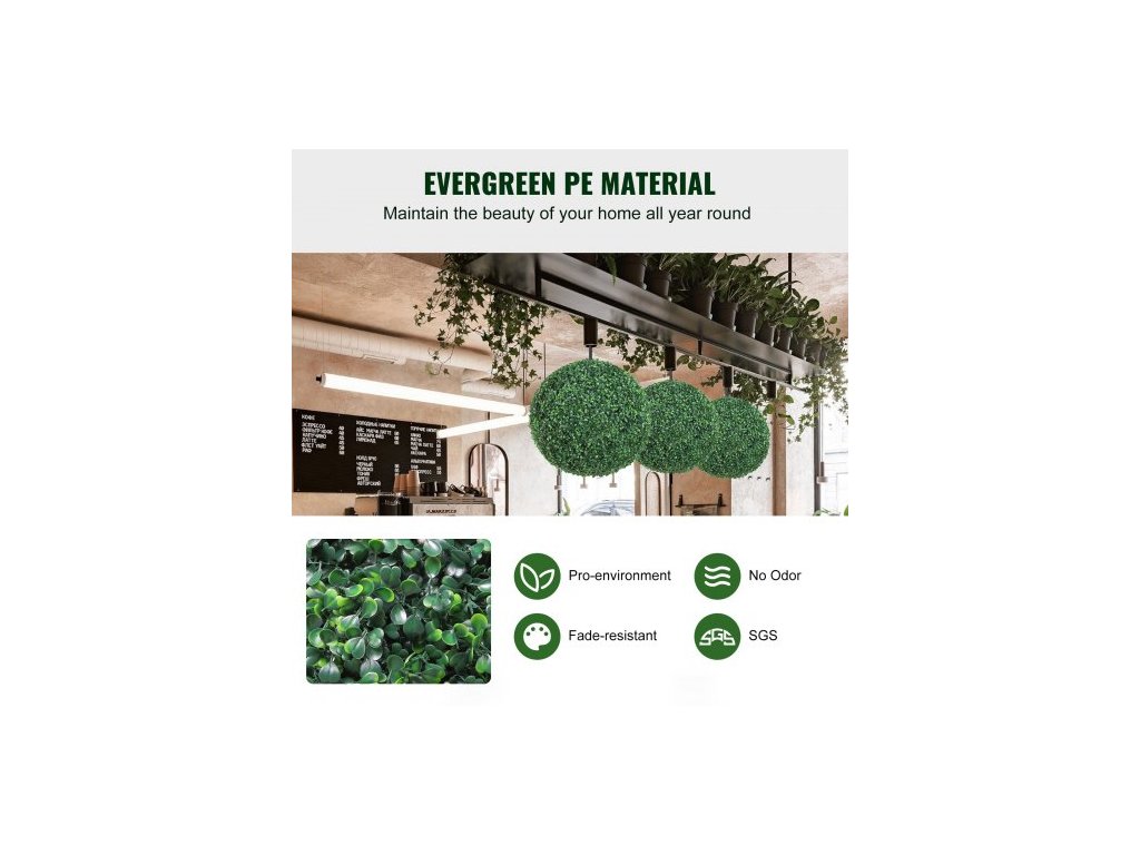 Umělé keře zimozeleň , výška 40 cm (2 kusy), umělé keře ve tvaru koule, celoročně zelené květinové dekorační koule na zahradu, balkon, do zahrady, na svatbu a do domácnostiKvalitní PE materiál