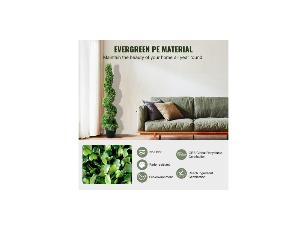 Umělé keře zimozelí, 121,9 cm vysoké (2 kusy), umělá keřová rostlina, venkovní, celoročně zelená rostlina s vyměnitelnými listy pro dekorativní použití uvnitř/venku/na zahradu