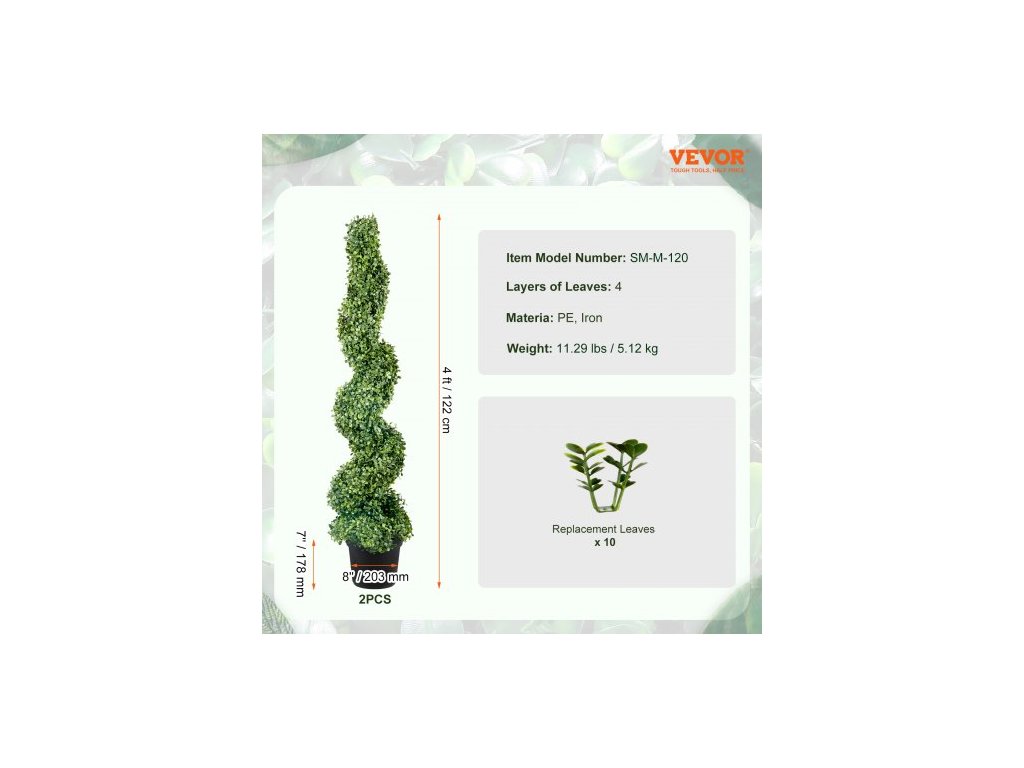 Umělé keře , zimozeleň, výška 121,9 cm (2 kusy), umělá keřová rostlina pro venkovní použití, celoročně zelená rostlina s vyměnitelnými listy pro dekorativní použití v interiéru/exteriéru/zahraděKvalitní PE materiál