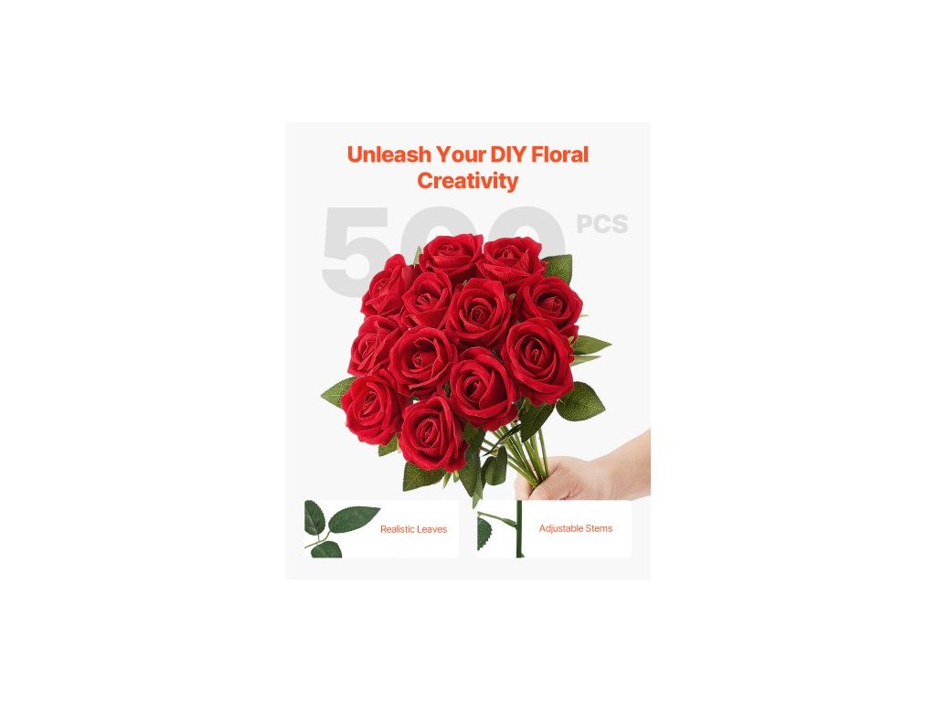 Umělé květiny , 500 ks realisticky vypadajících červených pěnových umělých růží, ve velkém, falešné červené na rozlučku se stonky pro DIY svatební kytice, dekorace do interiéru, aranžmá, dekorace na párty stolyIdeální květinová alternativa
