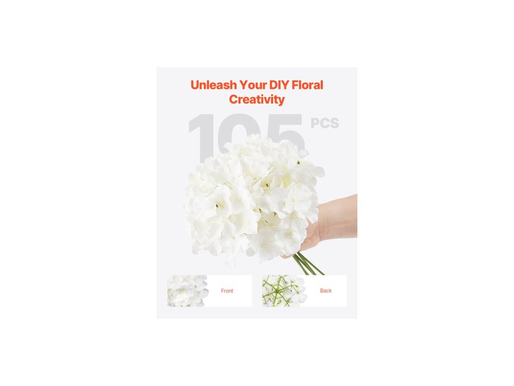 Umělé květiny , 105 ks realisticky vypadajících bílých hedvábných umělých hortenzií, velké množství, bílá umělá svatební hostina se stonky pro DIY svatební kytice, dekorace do interiéru, aranžmá, dekorace na párty stolyIdeální květinová alternativa