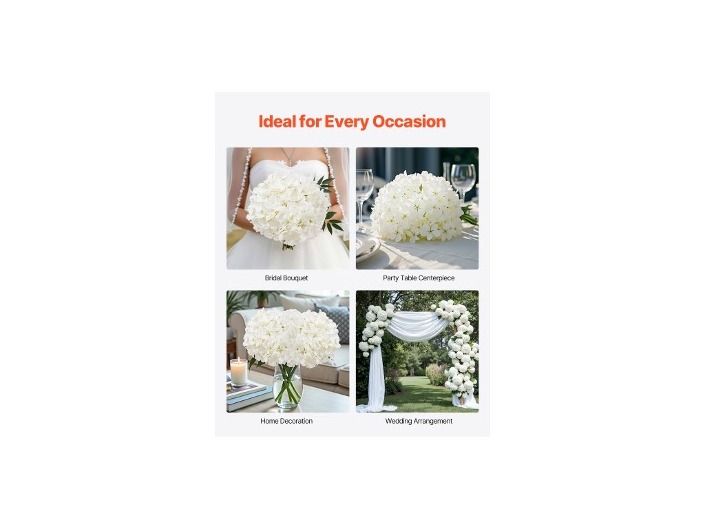 Umělé květiny , 105 ks, skutečné bílé hedvábné umělé hortenzie, velké množství, bílá falešná svatební dekorace se stonky pro DIY svatební kytice, dekorace do interiéru, aranžmá, dekorace na párty stoly