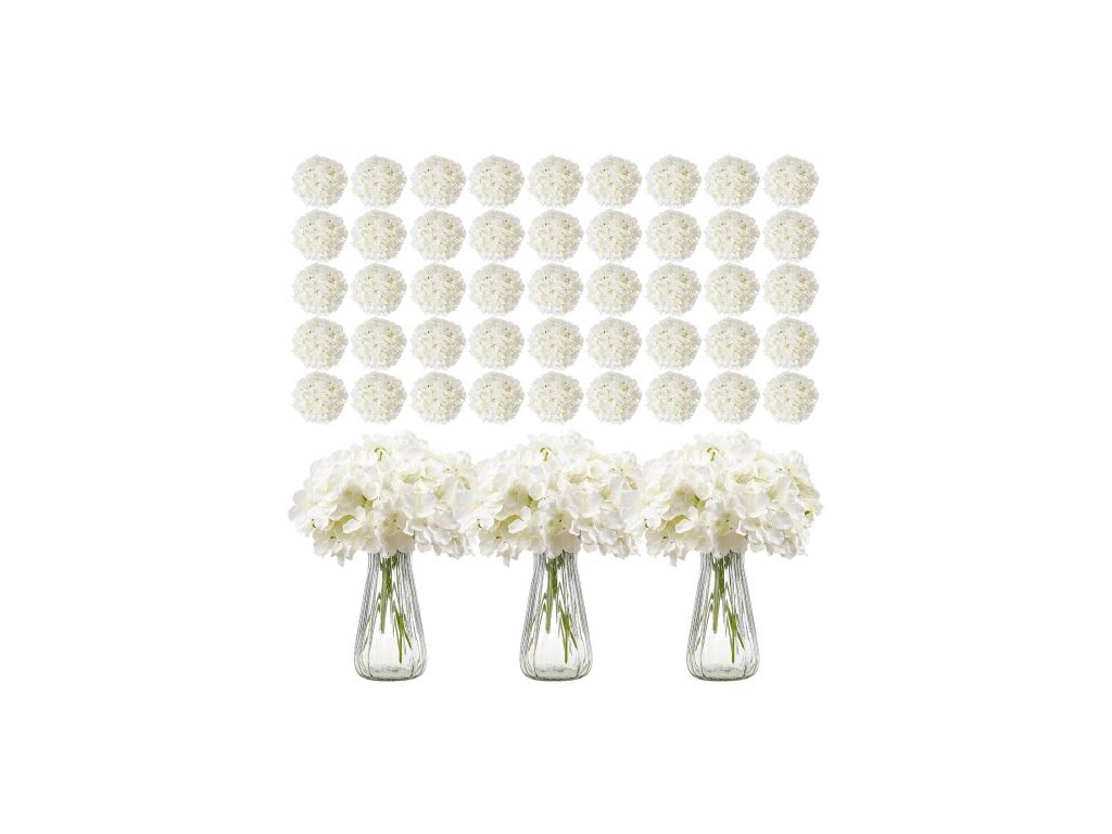 Umělé květiny , 305 ks realisticky vypadajících bílých hedvábných umělých hortenzií, velké množství, bílá falešná svatební hostina se stonky pro DIY svatební kytice, dekorace do interiéru, aranžmá, dekorace na párty stolyIdeální květinová alternativa