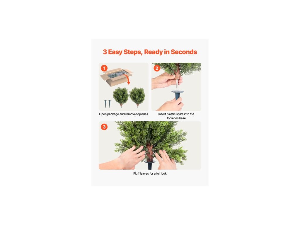 Umělé topiary cypřišů s trnem do země, 2 sady 406mm umělých keřů a keřů, rostliny v květináčích, umělý hedvábný strom vypadá jako skutečný, pro dekoraci na verandu, venkovní, vnitřní, terasu, zahradu, balkon, dvůrRealistická, povětrnostně odolná zeleň