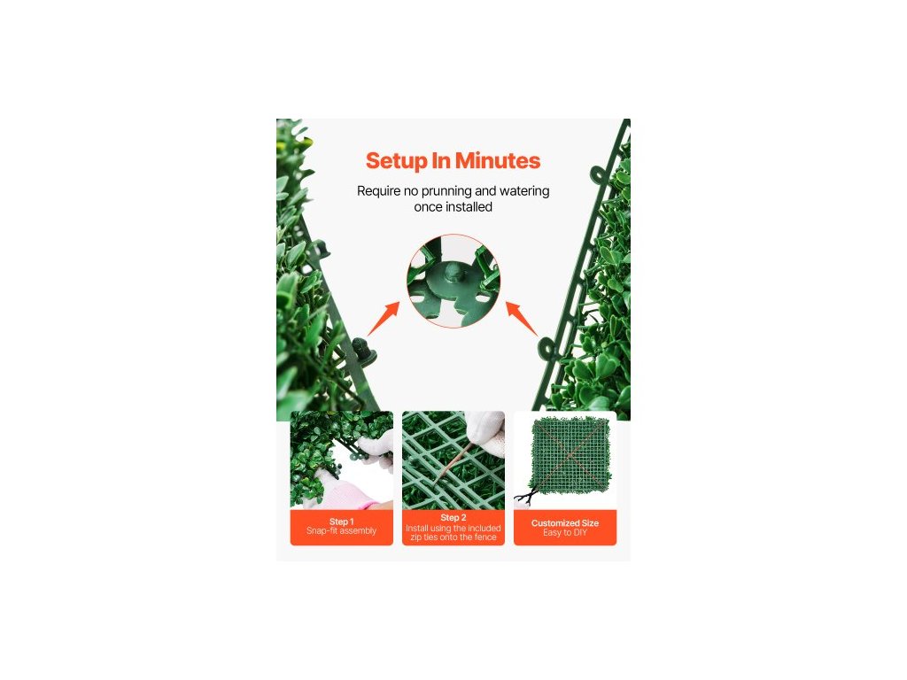 Umělé travnaté stěnové panely, 12 ks 20 x 20 palců, 3D kombinované zelené panely z buxusu pro vnitřní a venkovní zelené dekorace a krytí plotu z břečťanu, soukromí na pozadí, nástěnný živý plot do zahrady