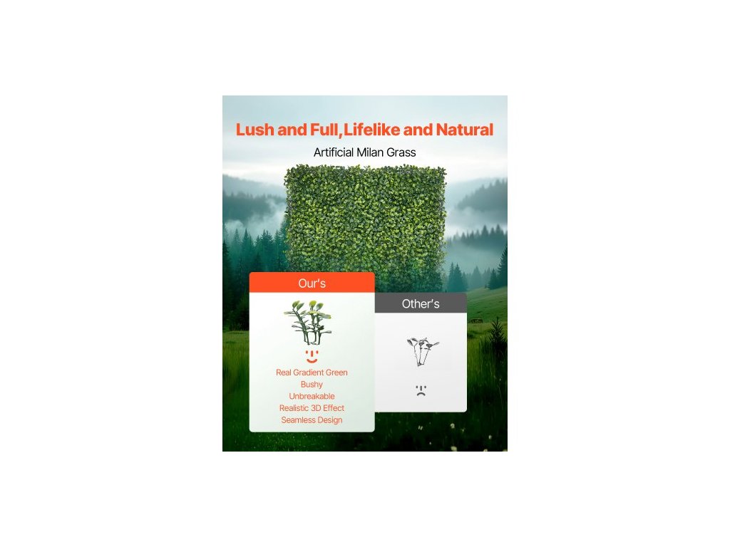 Umělé travnaté stěnové panely , 40 x 120 palců, panel z umělé trávy Milan Grass Grenery Boxwood pro vnitřní a venkovní zelené dekorace a krytí plotu z břečťanu, soukromí na pozadí, nástěnný živý plot do zahrady