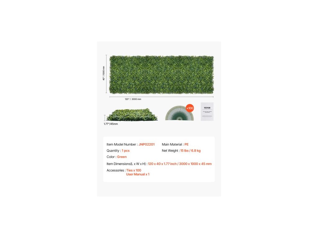 Nástěnné panely z umělé trávy , 40 x 120 palců, panel z umělé trávy Milan Grass Greenery z buxusu pro vnitřní i venkovní zelenou dekoraci a zakrytí plotu z břečťanu, pozadí pro soukromí, nástěnný živý plot do zahradyŘezací