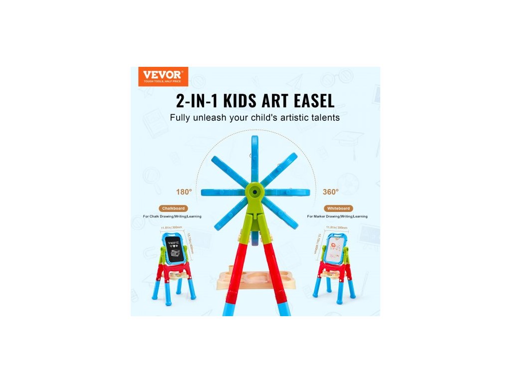 umělecký stojan pro děti, 2v1 oboustranný dětský umělecký stojan s magnetickou tabulí a tabulí, nastavitelný stojan, otočný a odnímatelný rýsovací stojan s malířským příslušenstvím pro chlapce a dívky