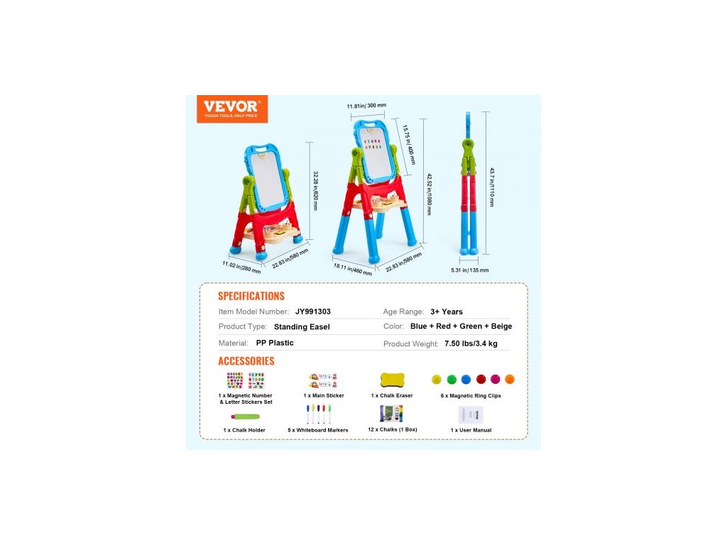 Typ produktu: Stojací stojan,Věkové rozmezí: 3+ let,Barva: Modrá + Červená + Zelená + Béžová,Číslo modelu položky: JY991303,Hmotnost produktu: 7,50 lbs/3,4 kg,Materiál: PP plast