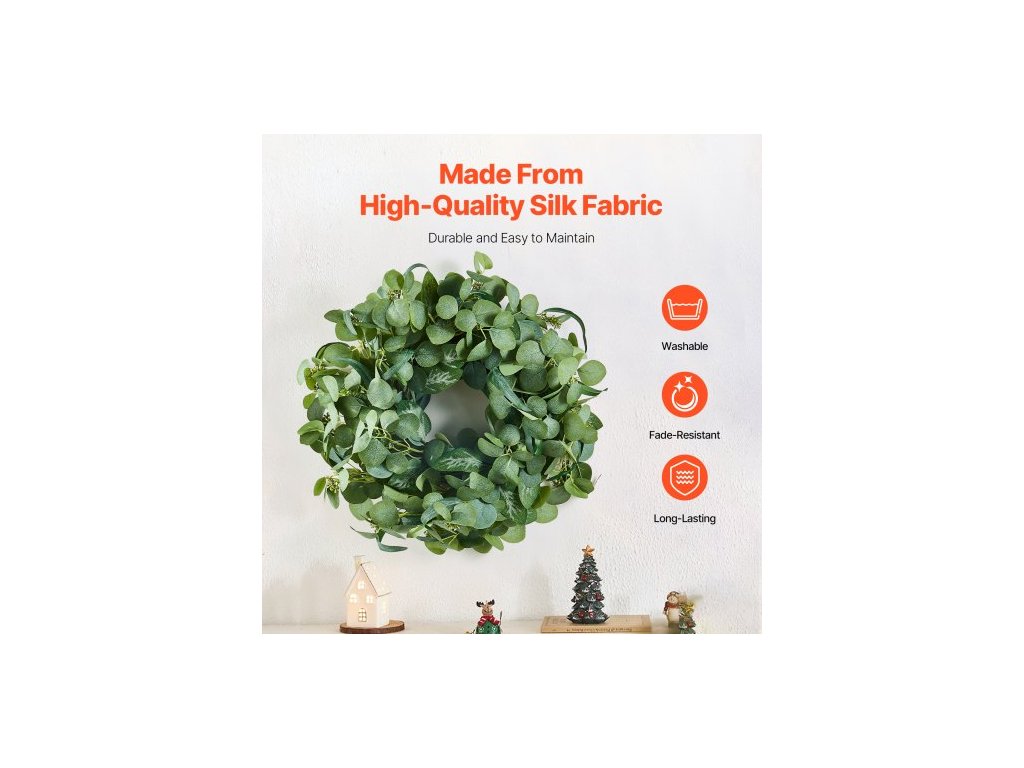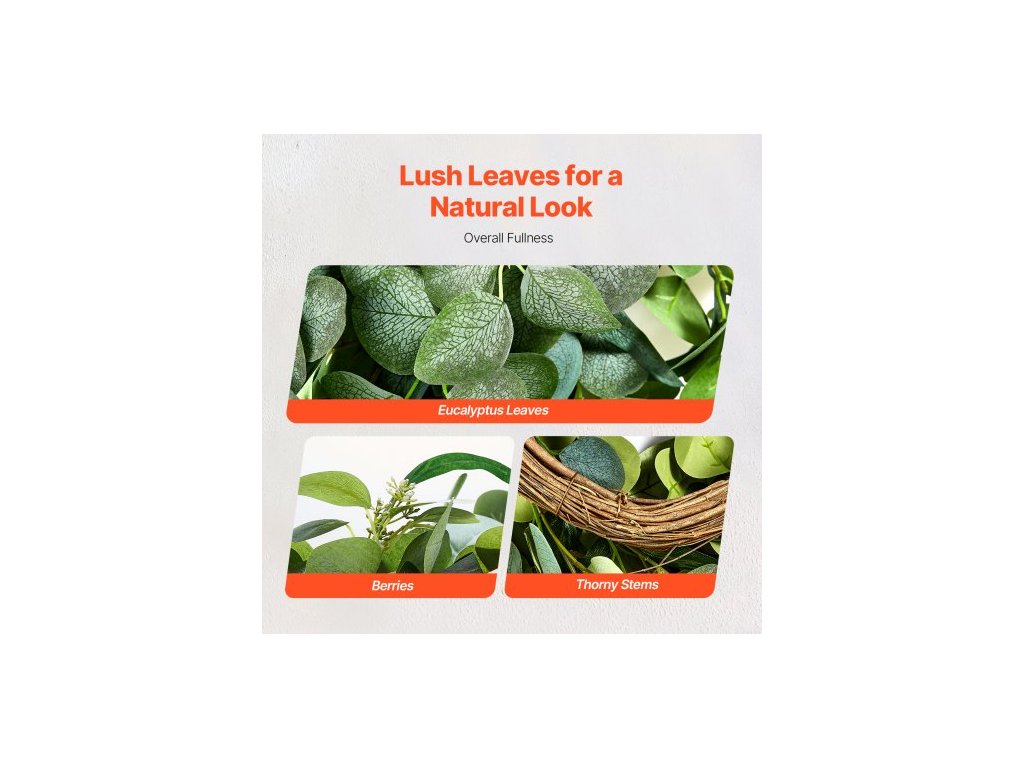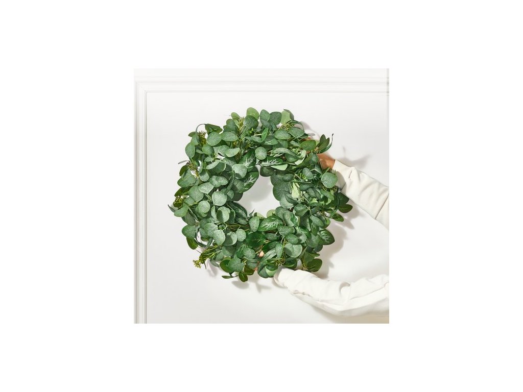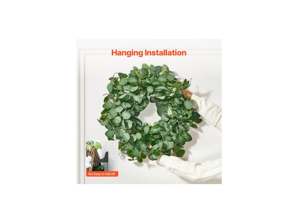 Vnější průměr: 26 palců/66,04 cm,Hlavní materiály: hedvábná tkanina, PE,Šířka prstence: 7,09 palců/180 mm,Barva: Zelená,Číslo modelu položky: WA53355,Květiny: Listy eukalyptu,Čistá hmotnost: 0,99 lb/0,45 kg