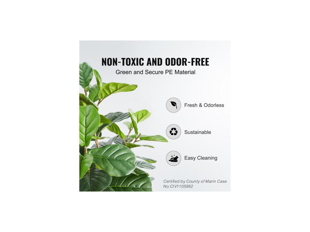 Umělý fíkovník s houslovými listy, 1,5 m, bezpečný PE materiál a ochrana proti převrácení, nenáročná umělá rostlina, realistický zelený umělý květináč pro domácí kancelář, sklad, interiér, exteriérBez zápachu pro větší klid