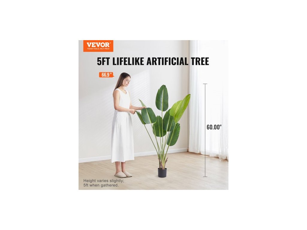 Umělý strom Rajky, 1,5 m vysoká umělá rostlina, materiál PE a ochrana proti převrácení, nenáročná rostlina, realistický zelený umělý strom pro domácí kancelář, sklad, interiér, exteriérBez zápachu pro větší klid