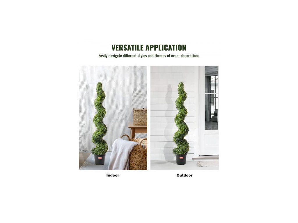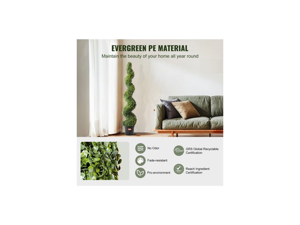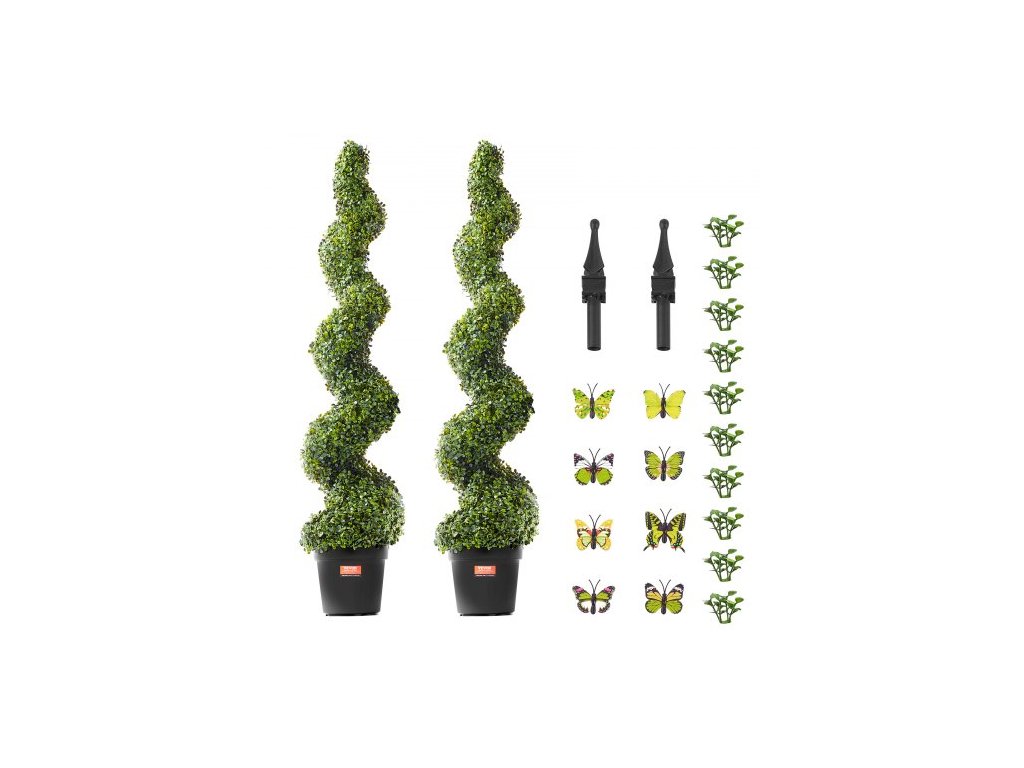 Umělý zimozeleň, vysoký 60 palců (2 kusy), spirálové umělé topiary, umělá rostlina s extra listy a květináčem a malou dekorací, sada zeleně s UV ochranou pro domácí dekoraci do interiéru/venkovního prostředí