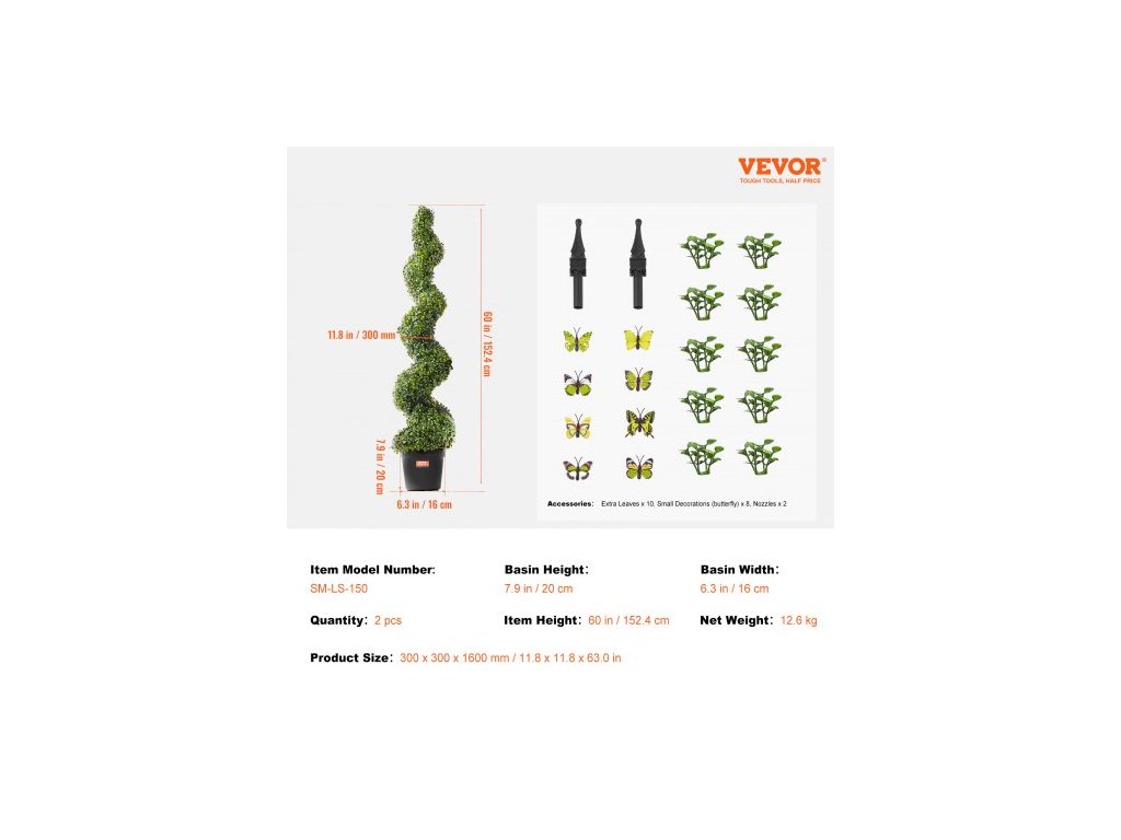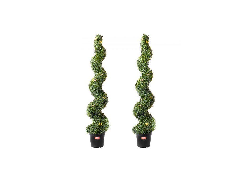 Umělý buxusový strom, výška 60 palců (2 kusy), spirálové umělé buxusové stromy, umělá rostlina s extra listy a květináčem a malou dekorací, sada zeleně s UV ochranou pro domácí dekoraci do interiéru/venkuRealistické a přírodní