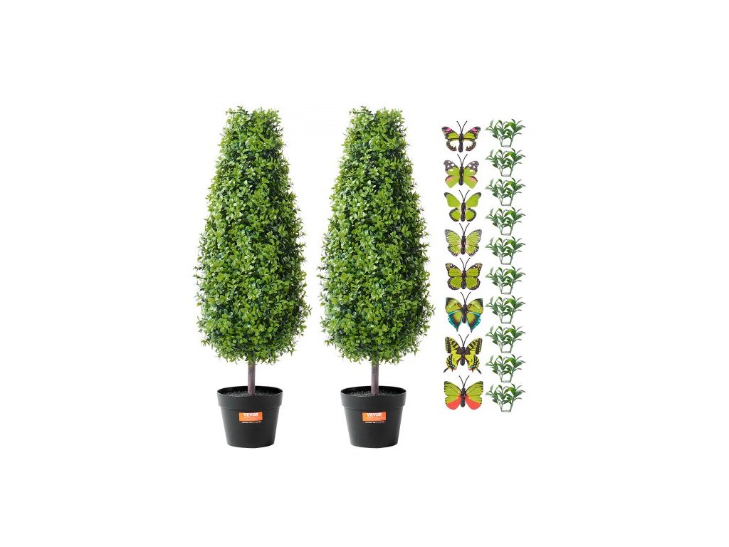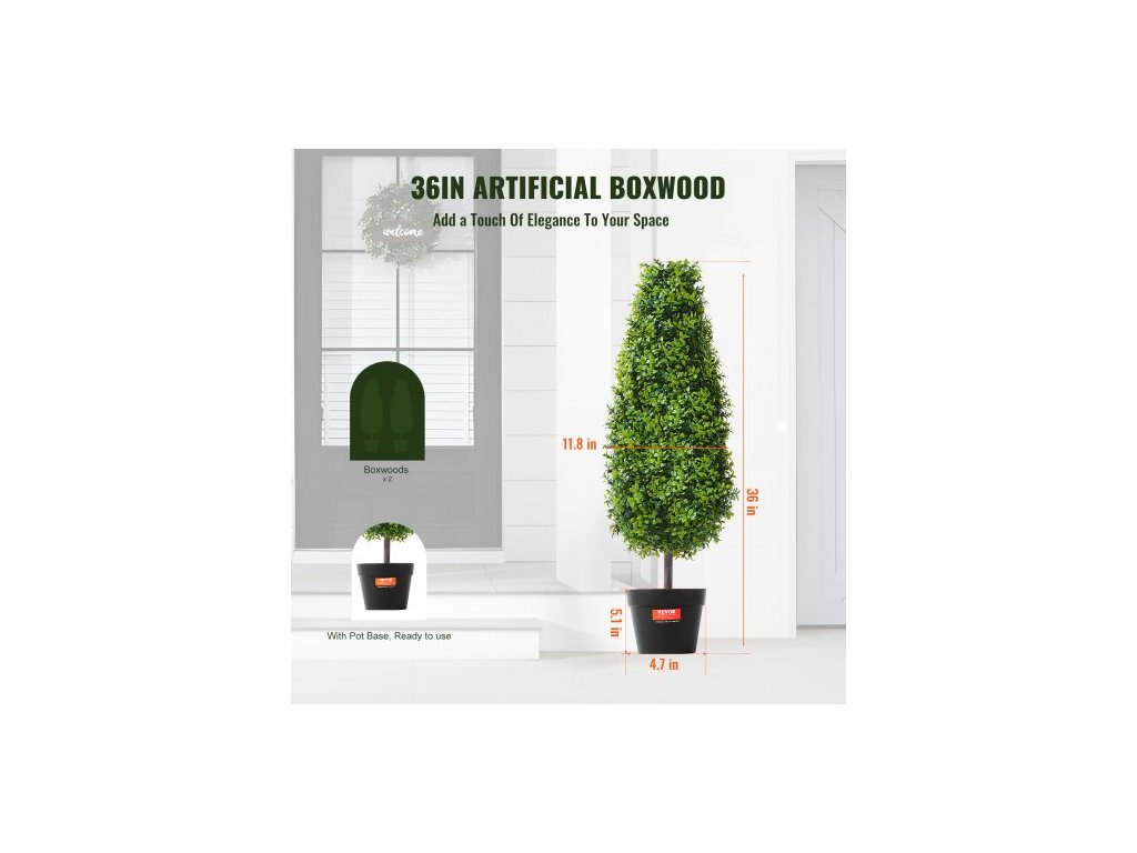 Umělý buxusový strom, výška 91 cm (2 kusy), umělé buxusové stromy, zelená umělá rostlina s extra listy a květináčem a malou dekorací, sada zeleně s UV ochranou pro domácí dekoraci do interiéru/venkuRealistické a přírodní