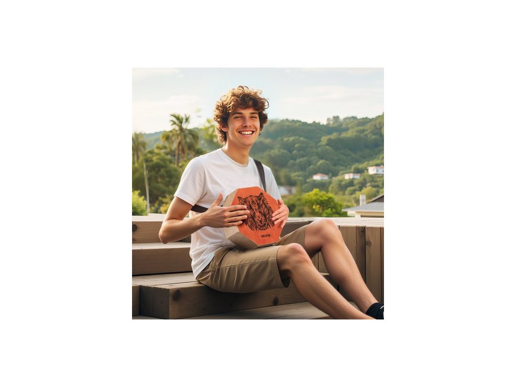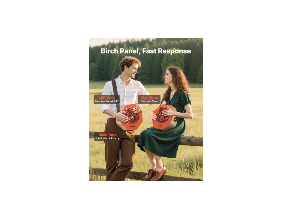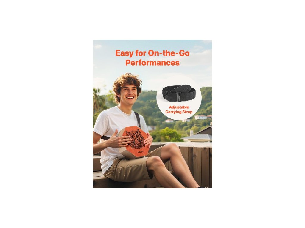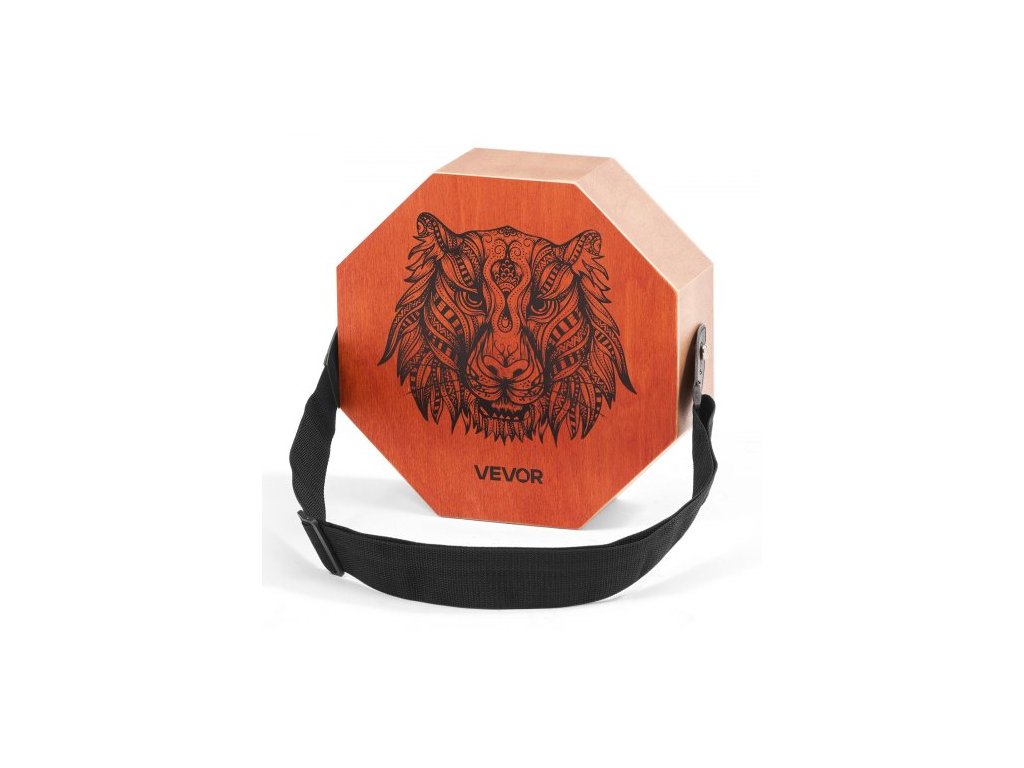 Unikátní cajon buben Box, s vnitřními kytarovými strunami, přenosná dřevěná perkusní krabička, březový buben, hudební nástroj s nastavitelným popruhem, pro začátečníky i profesionály, 295 x 295 x 100 mmKulatý zvukový otvor