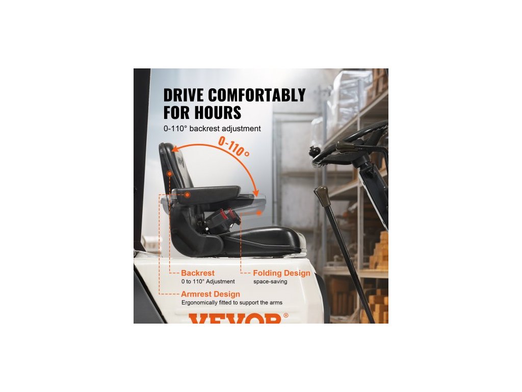Univerzální sedadlo pro vysokozdvižný vozík , sklopné sedadlo traktoru s nastavitelným úhlem opěradla, mikrospínač, bezpečnostní pás a loketní opěrky, drážka 6,3-13,4 palce pro traktor, nakladač, bagrNastavitelné opěradlo